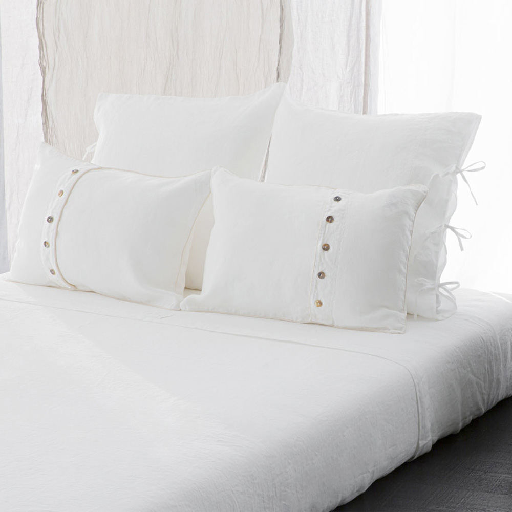 La funda de almohada está fabricada en Italia 100% de lino de alta calidad y se suaviza al tacto gracias a tratamientos especiales que realzan su apariencia natural. Es un tejido ideal para la cama ya que es hipoalergénico y antibacteriano , gracias al uso de tintes naturales e hipoalergénicos que dan brillo y garbo.