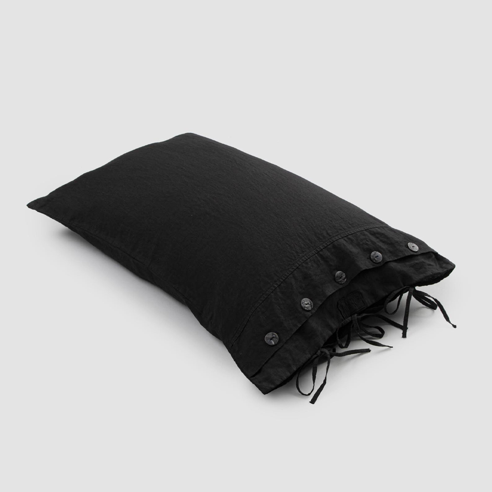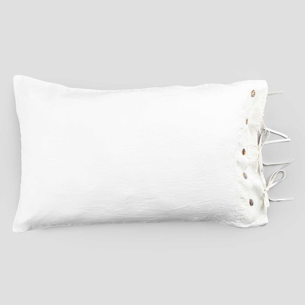 Funda de almohada de lujo en lino blanco o negro con botones y cordones, calidad made in Italy.