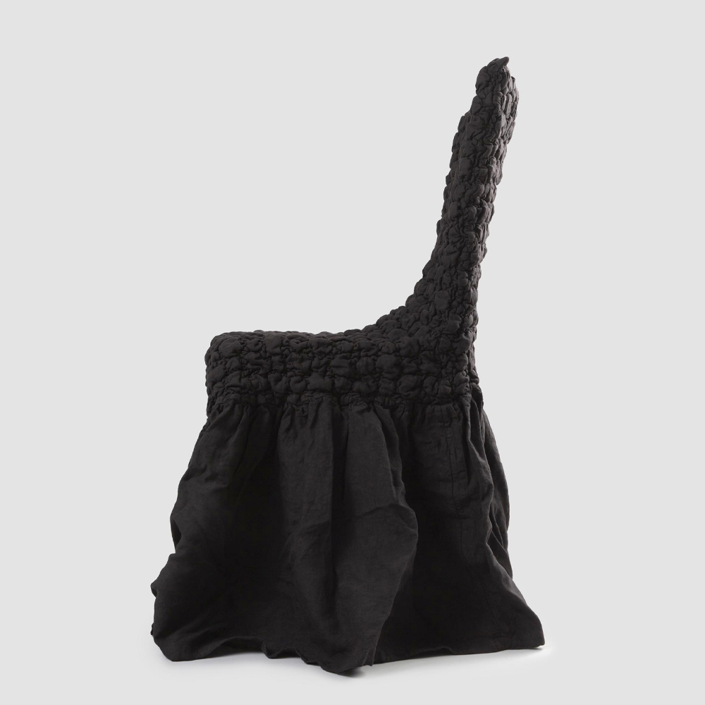Funda de silla en lino claro gofrado con volante blanco, negro, manteca vieja o mineral viejo made in Italy.