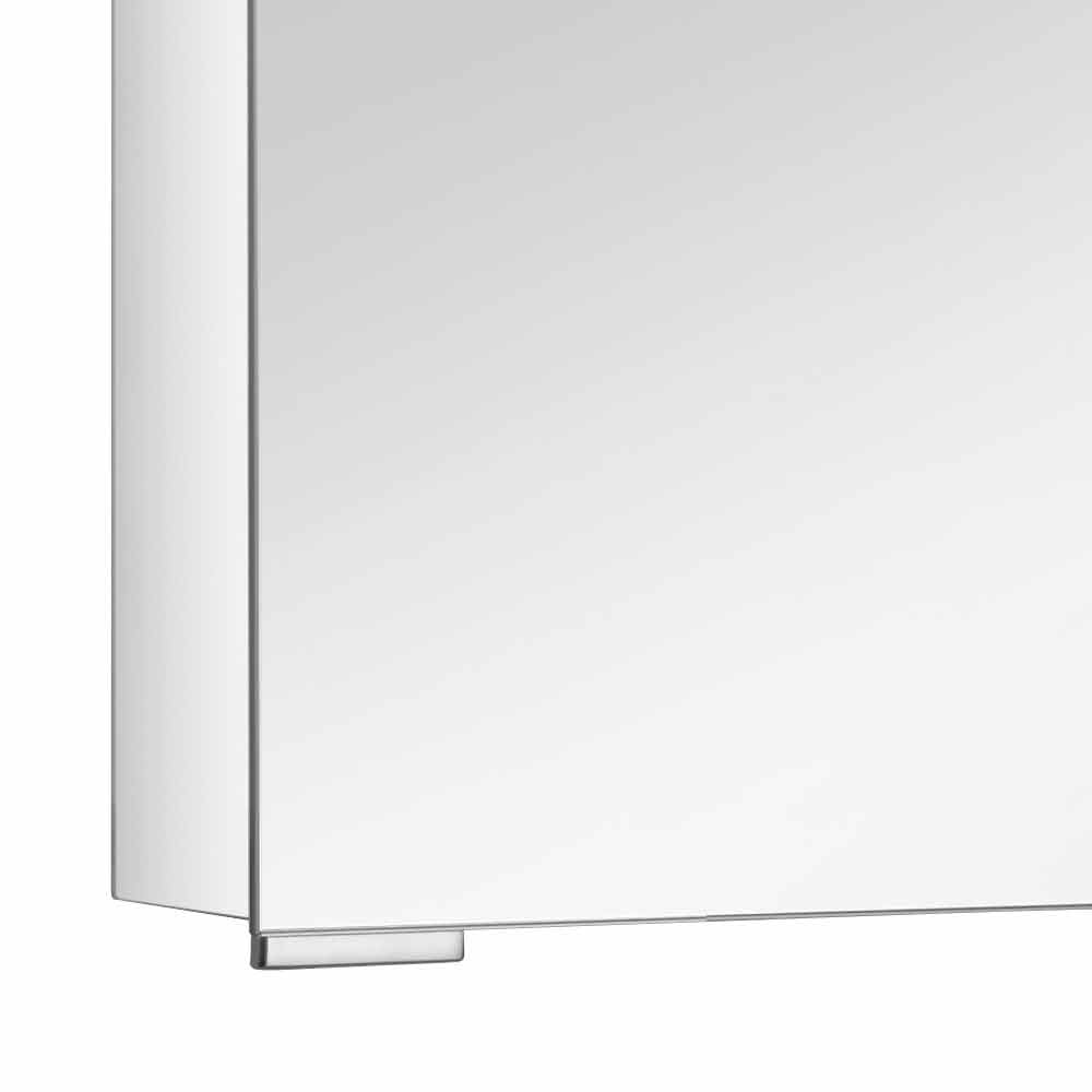 Armario con espejo con puerta de espejo (también interna) y los espejos laterales con estructura de aluminio pintado en color plata anodizado y detalles en cromo acabado.