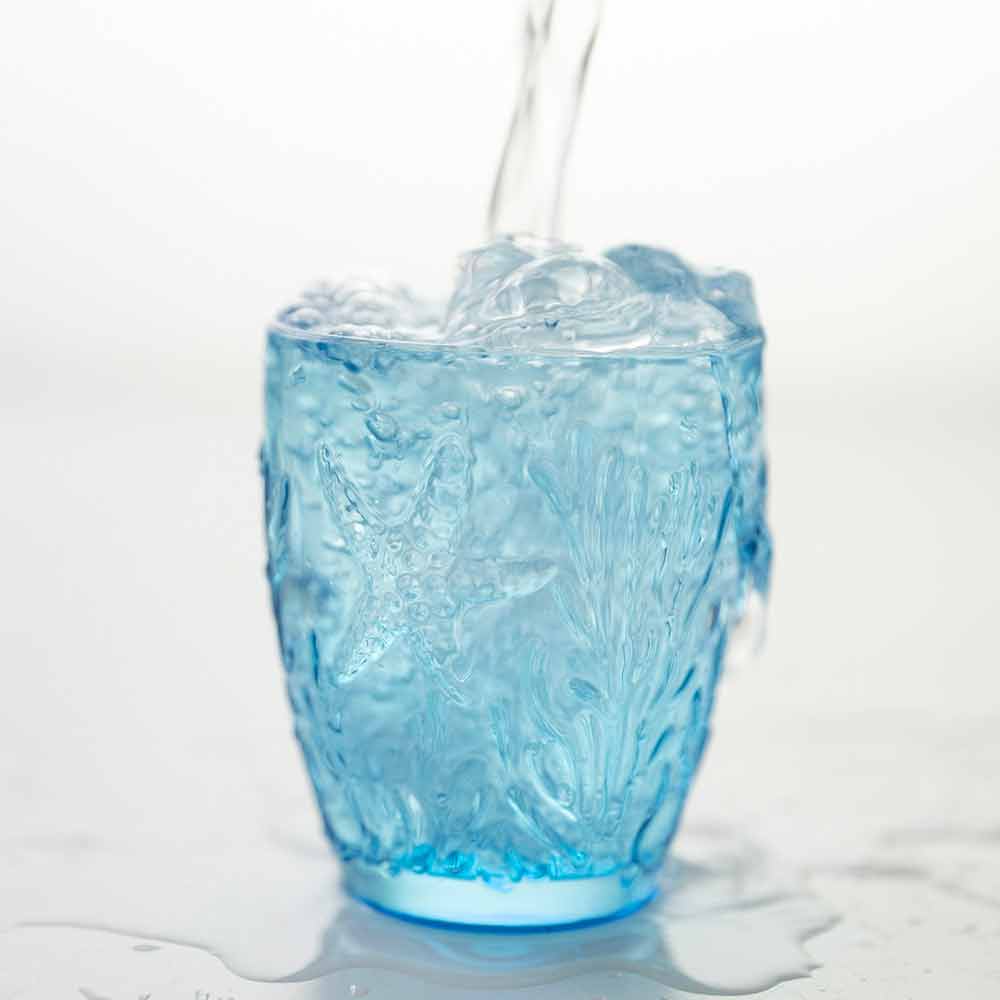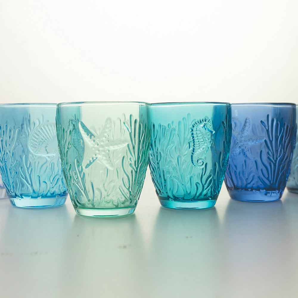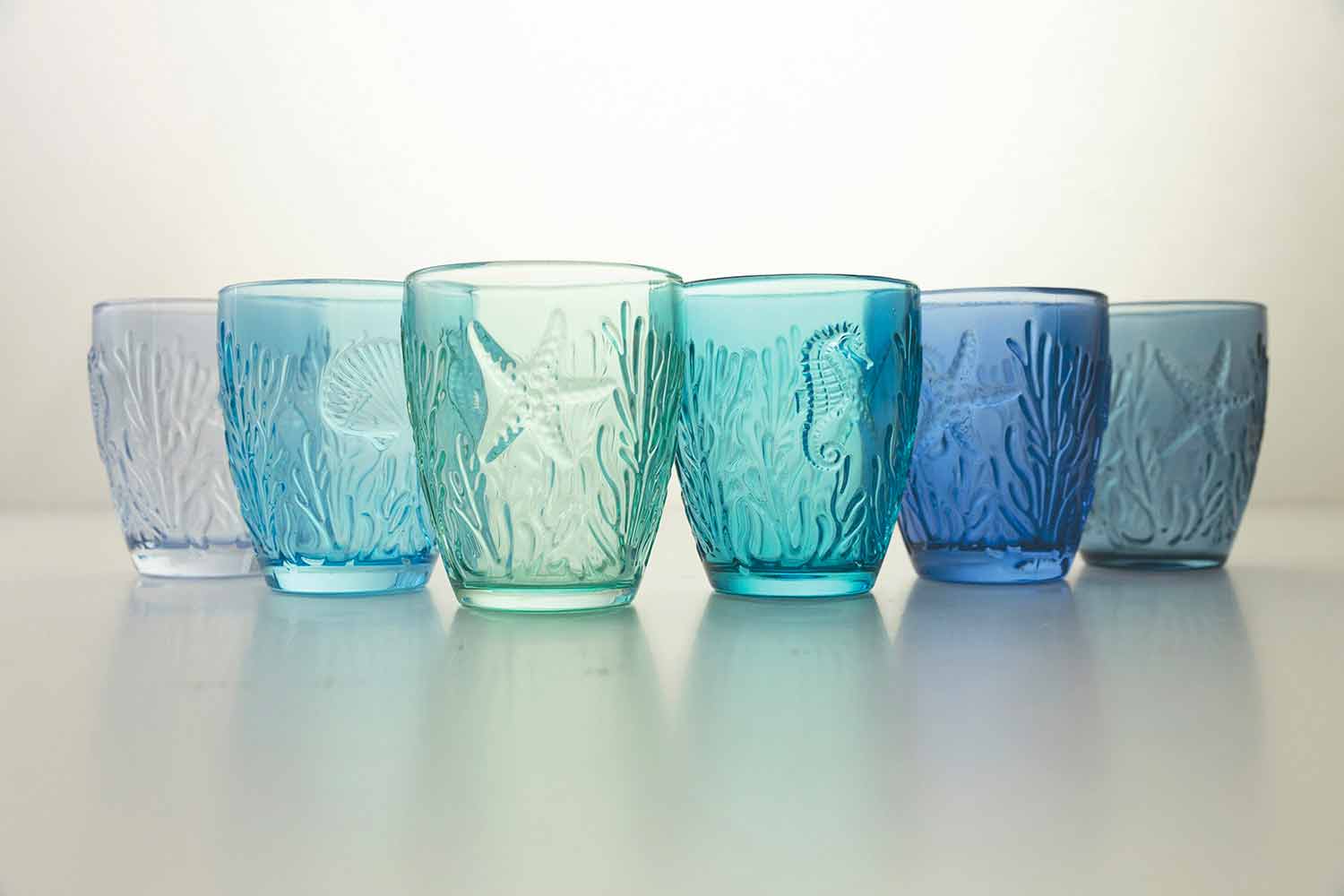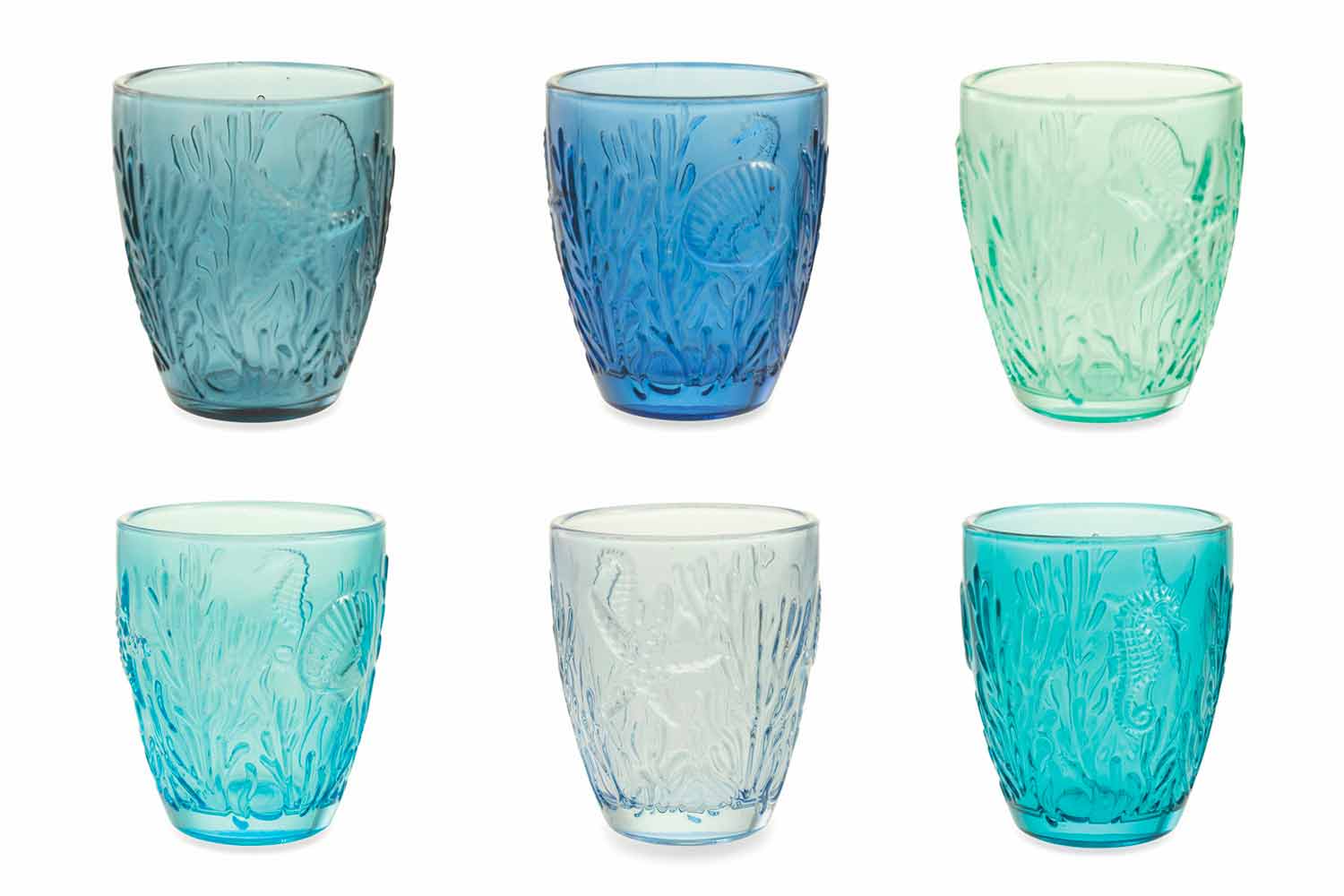 Vasos modernos de color azul en vidrio Servicio de 12 piezas para agua.