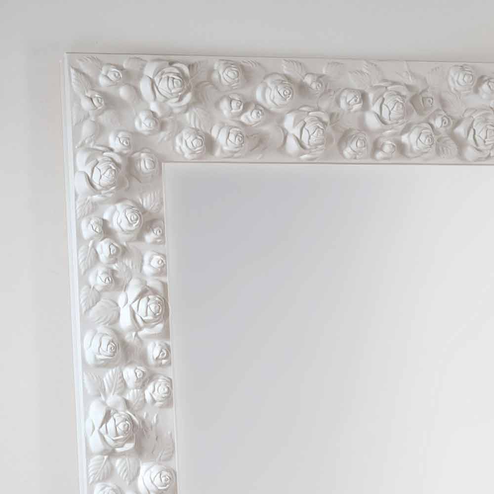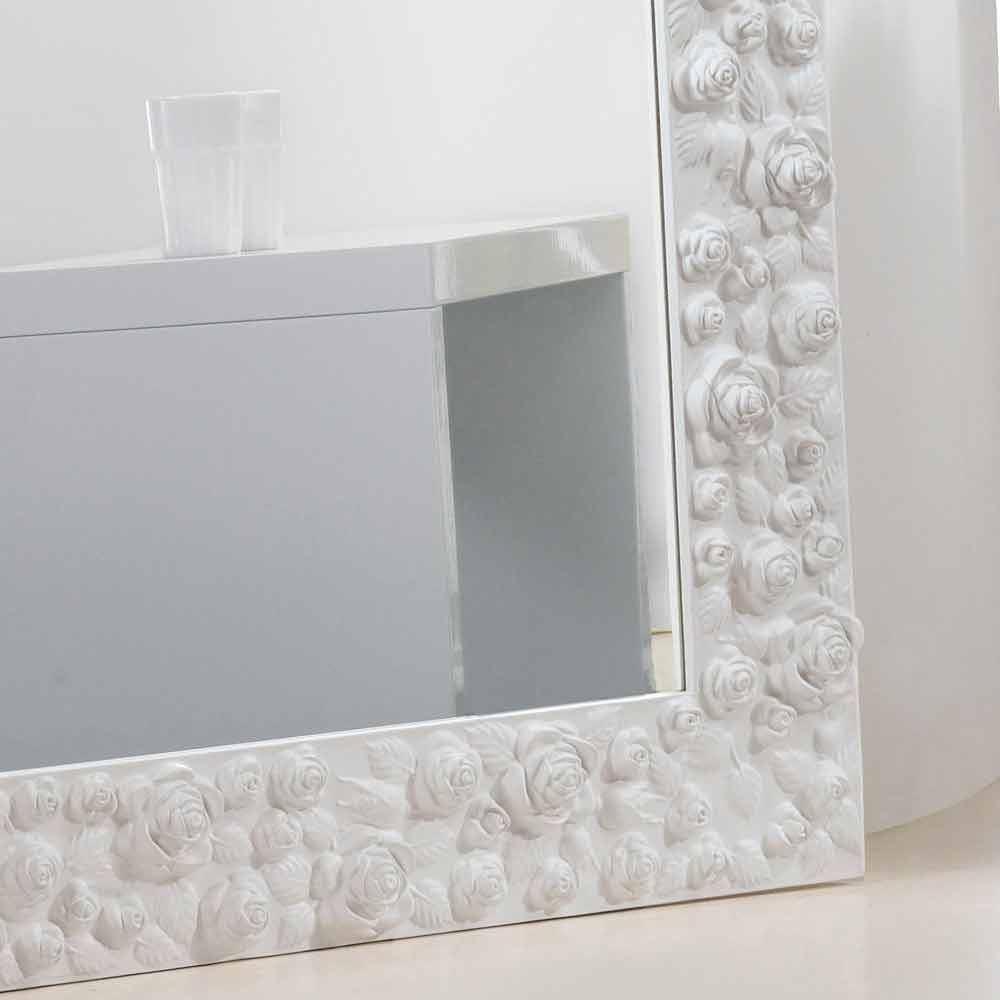 La flor del espejo se caracteriza por una artesanía realizada con materiales de alta calidad y el uso de la experiencia de hábiles artesanos italianos. El marco es de madera y está decorado con rosas. acabado satinado blanco. Cristal de espejo, de 4 mm de espesor. Made in Italy. De cuelgue tanto vertical como horizontalmente.