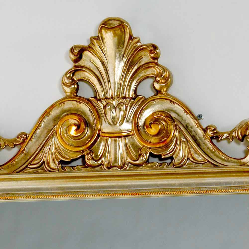 La Tiara espejo se caracteriza por una artesanía realizada con materiales de alta calidad y el uso de la experiencia de hábiles artesanos italianos. El bastidor está hecho de madera decoradas con tallas. acabado en pan de plata meca. Cristal de espejo, de 4 mm de espesor. Made in Italy.