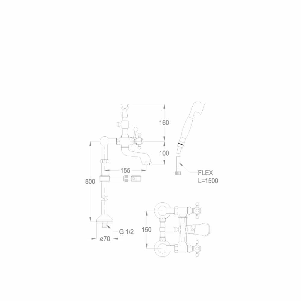 Grifo de bañera exterior en columnas de suelo con desviador y ducha dúplex Made in Italy.