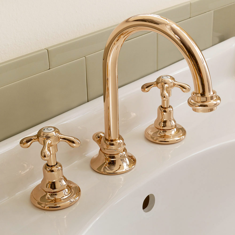 Grifo de lavabo alto vintage de latón con 3 orificios Made in Italy - Klarisa