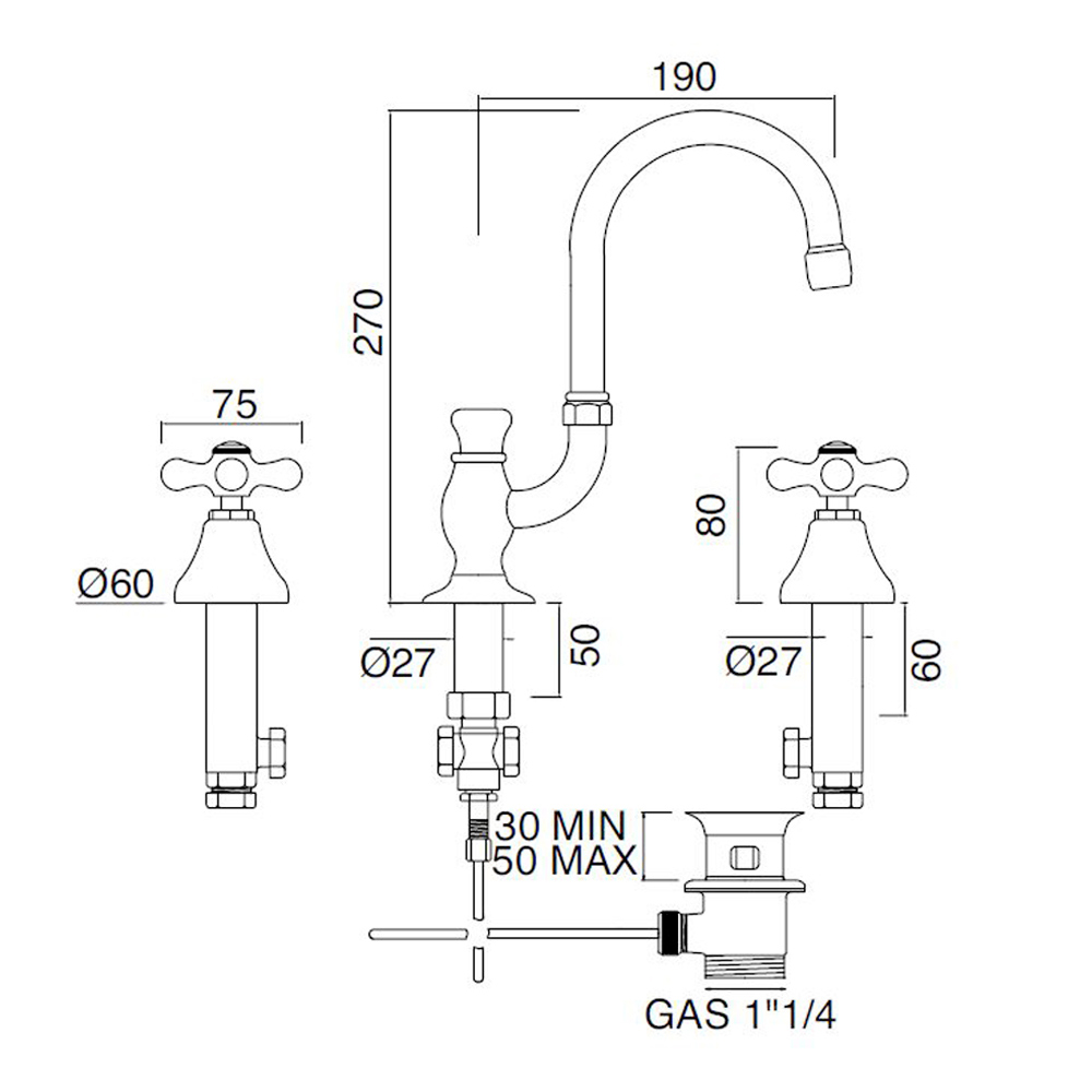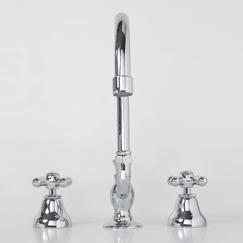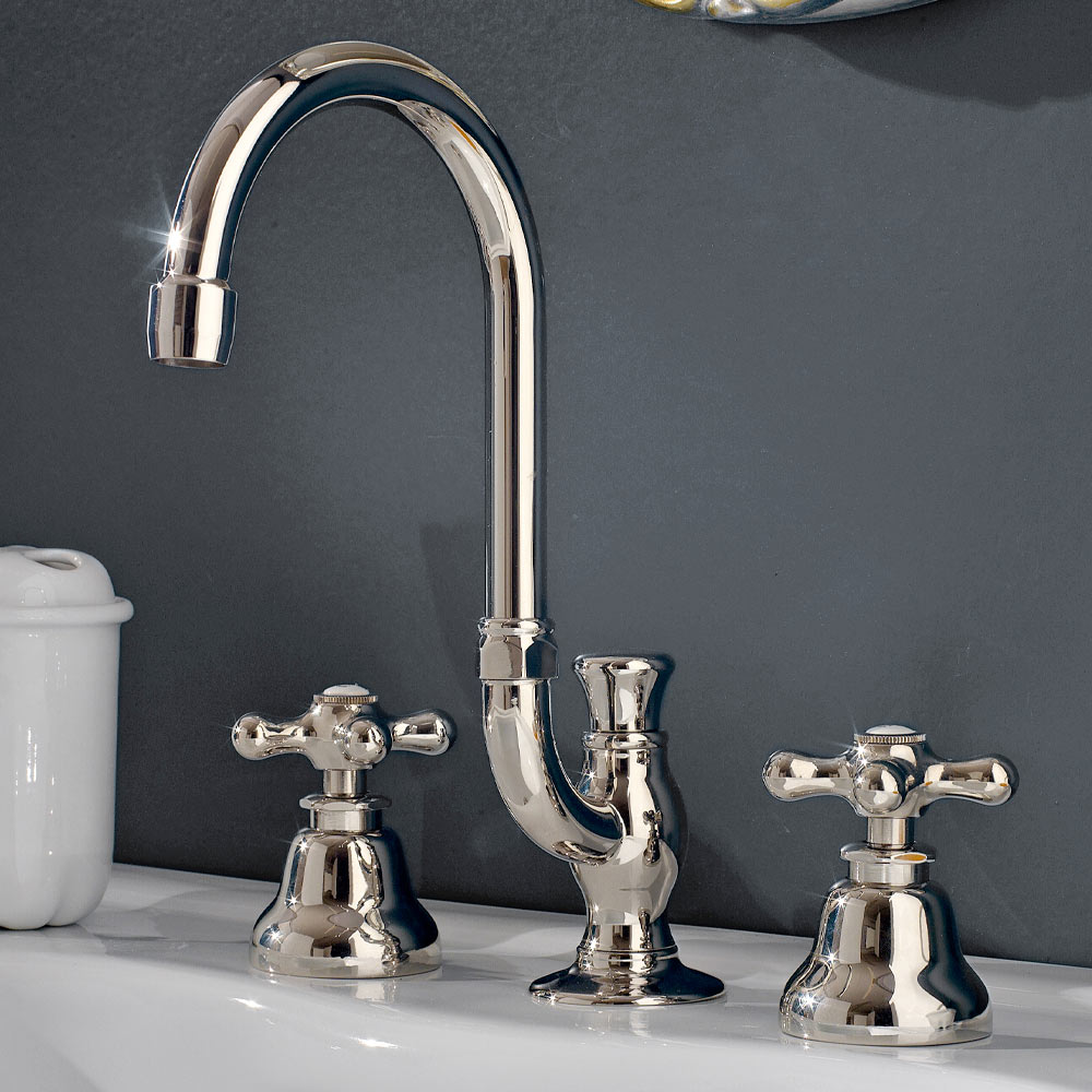 Grifo de lavabo de 3 orificios con caño alto y desagüe de latón, de alta calidad fabricado en Italia.