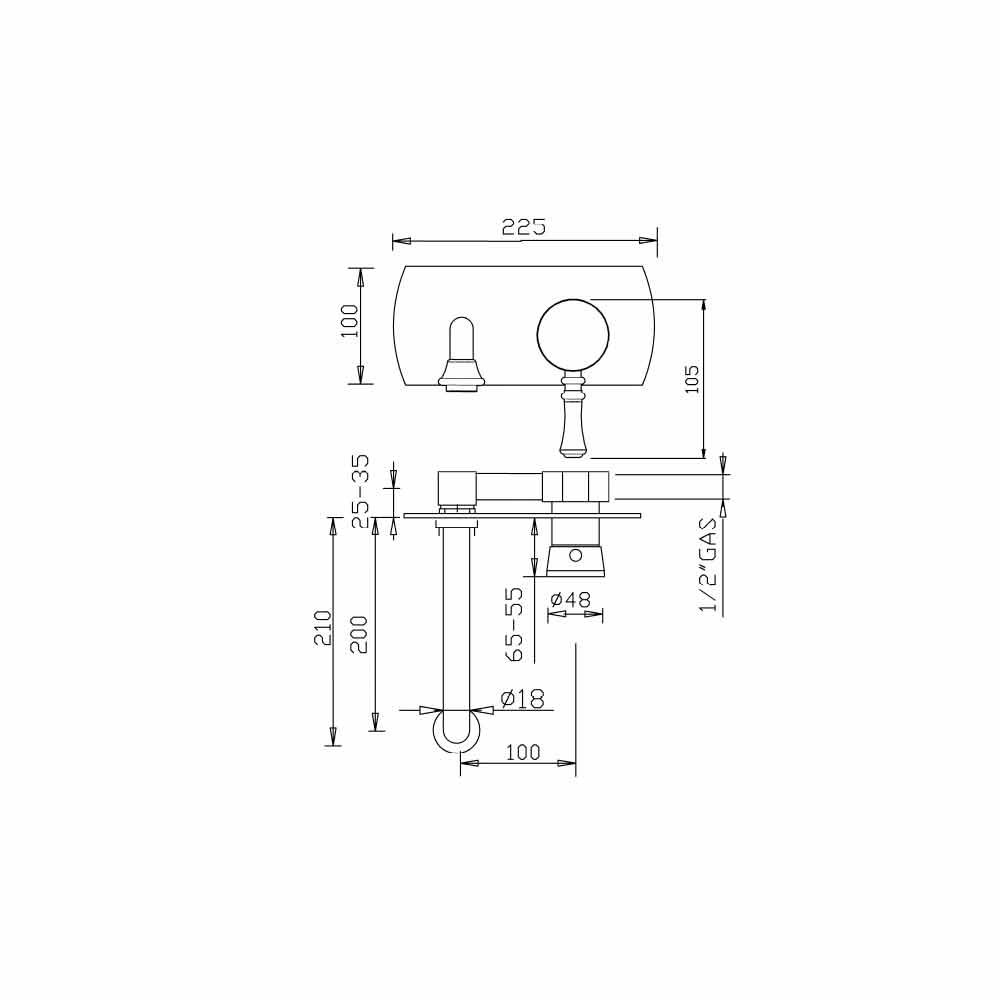 Mezclador de lavabo de pared completo con parte empotrada y partes exteriores, con placa única. Sin escape.
