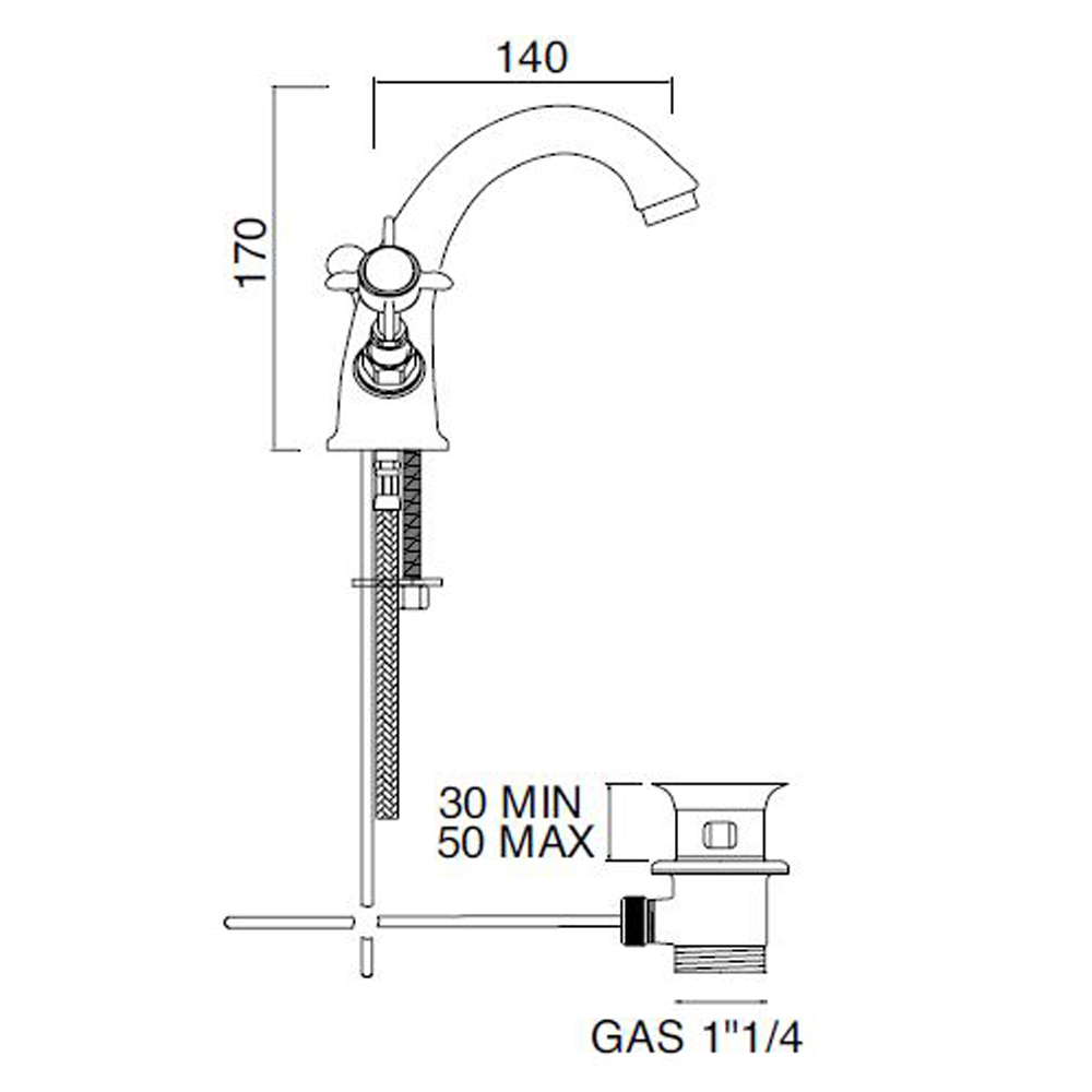 Grifo de lavabo de un orificio de latón artesanal de estilo clásico fabricado en Italia.