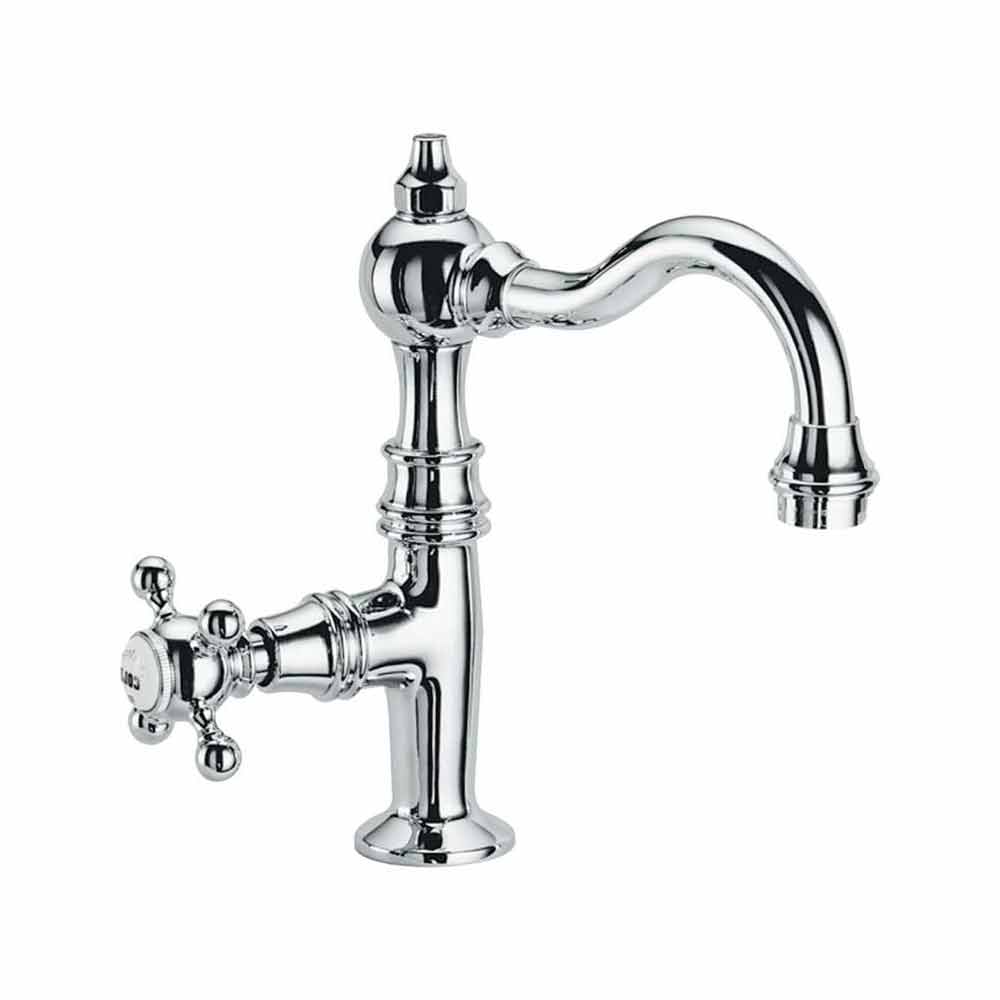 Grifo monomando para lavabo de sobre encimera en latón con acabado cromado. Totalmente producido en Italia con materiales de alta calidad que cumplen con los estándares europeos. Este mezclador se puede instalar en la parte superior, equipado con un aireador y cabezal de cerámica de 180 °; Recomendado por su sistema Energy Saving para ahorro de agua de 6L / min y su caño giratorio.