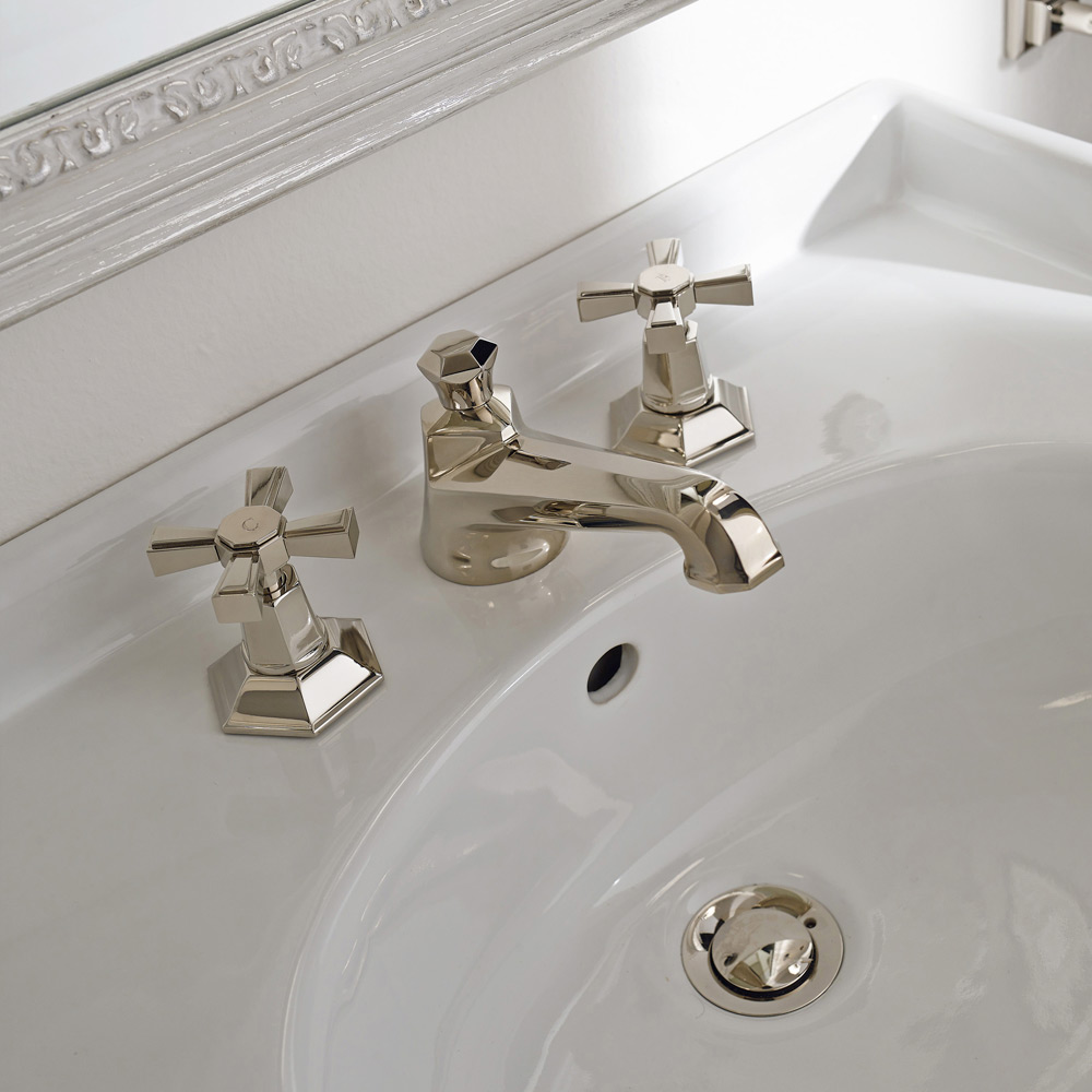 Grifo de lavabo de 3 orificios en diseño vintage de latón fabricado en Italia, Silvana.