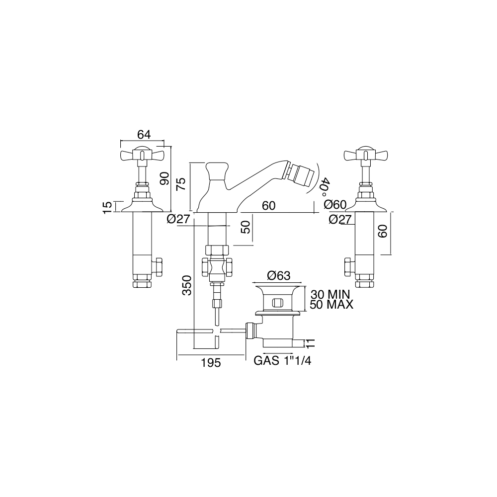 Grifo para bidé de 3 orificios de estilo vintage fabricado en Italia por Katerina brass.