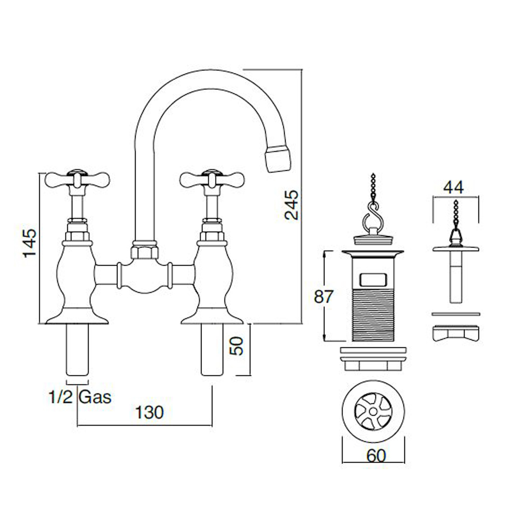 Grifo puente para lavabo estilo clásico fabricado en latón artesanal made in Italy.