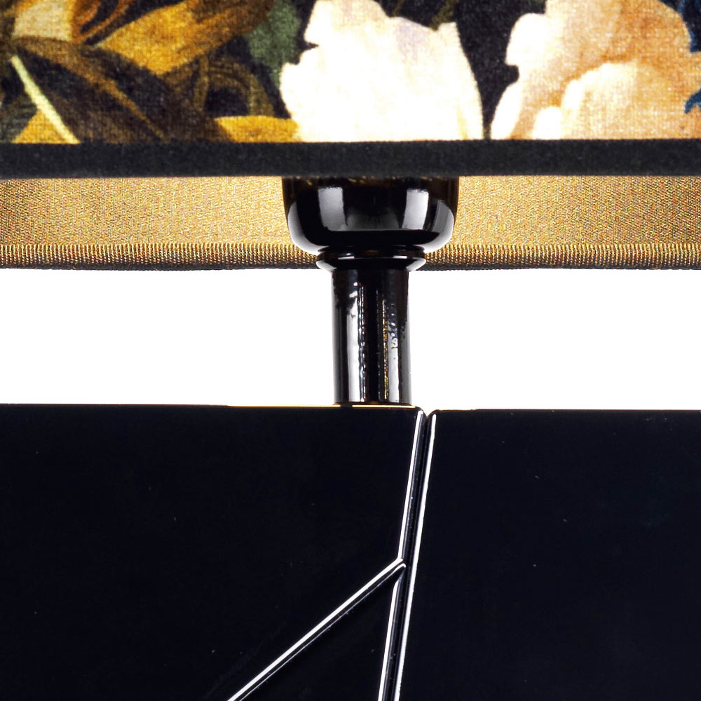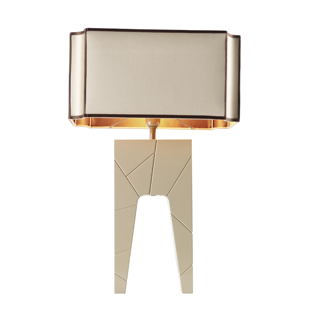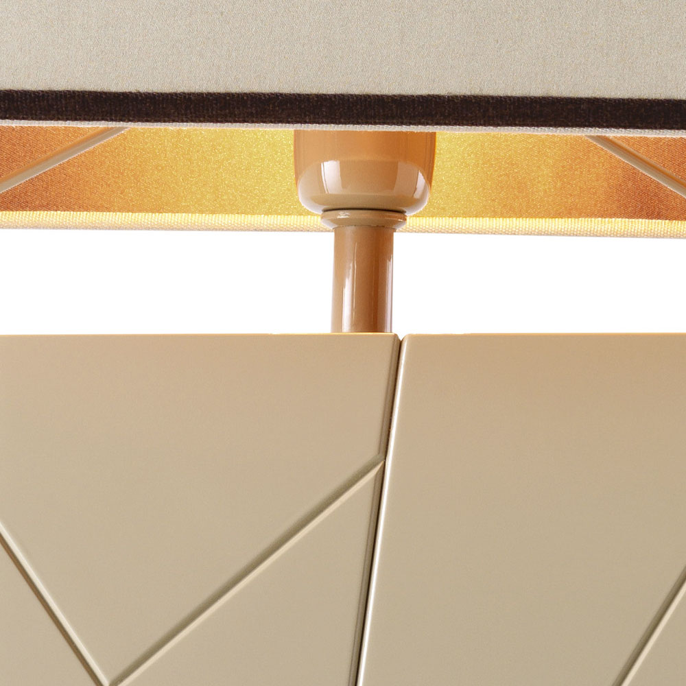 La lámpara Zarafa tiene una estructura sólida de madera maciza lacada, elegida entre dos colores beige y negro con un sombrero de tela.