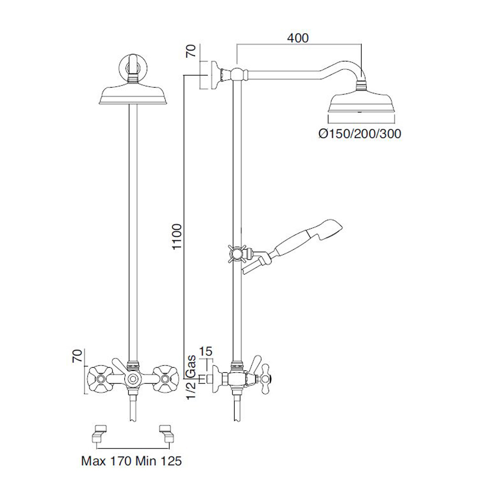 Grupo de ducha dúplex de estilo clásico en latón artesanal made in Italy