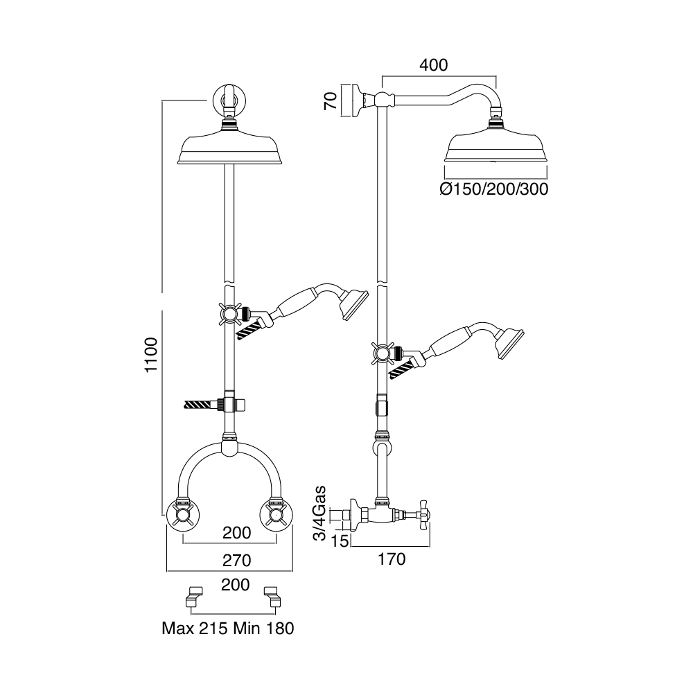 - W 27 x D 40 x H 110 cm Ø cabezal de ducha 15 cm;