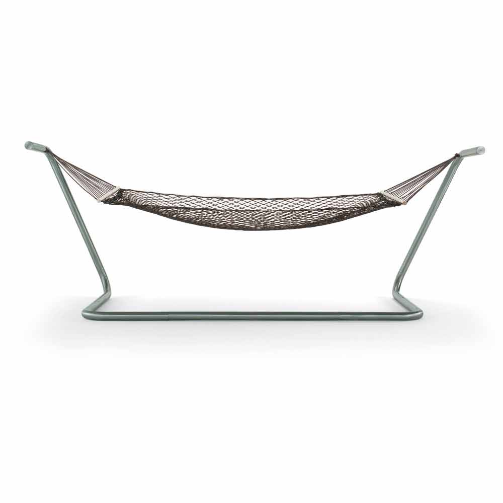 Hamaca en red de jardín negra con pedestal, diseño moderno made in Italy.