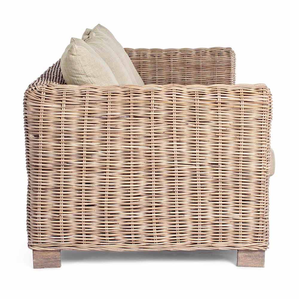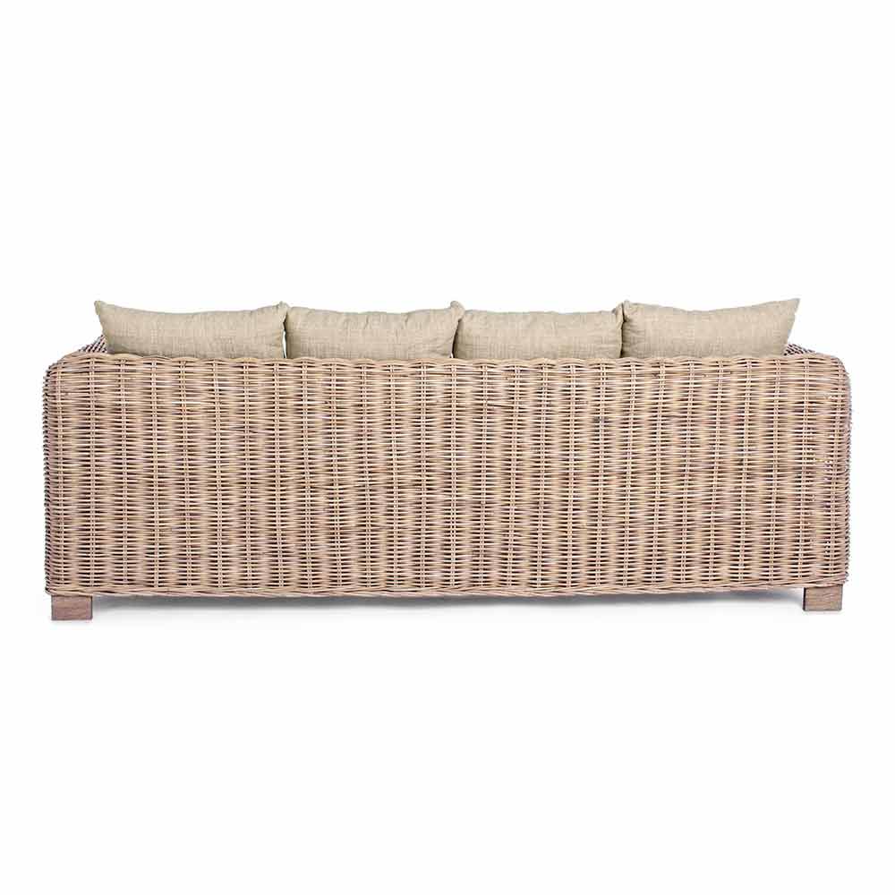 Sofá de jardín de estilo étnico para uso interior o exterior, realizado en ratán y mango.