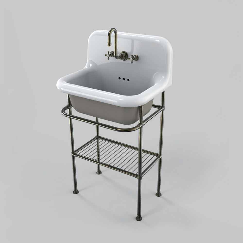 Tom es un hermoso lavabo suspendido, de forma rectangular, con un diseño vintage y original enriquecido por una hermosa estructura de metal con parrilla.