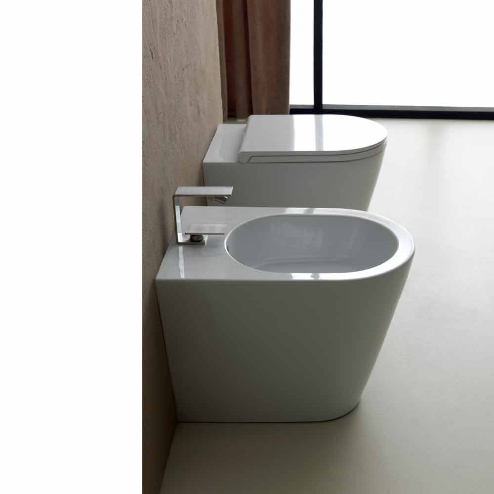Inodoro Sun Round moderno de cerámica blanca 57x37 cm hecho en Italia