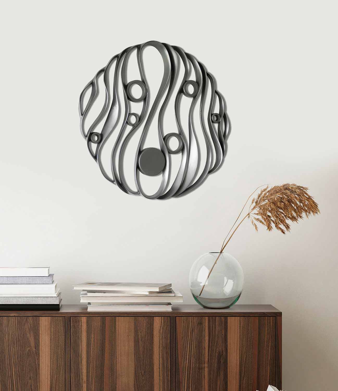 Decoración de pared de diseño moderno en cerámica perforada negra o antracita, para sala de estar o dormitorio hecha en Italia.