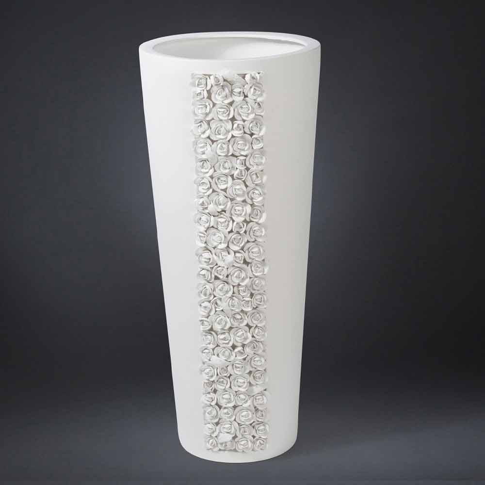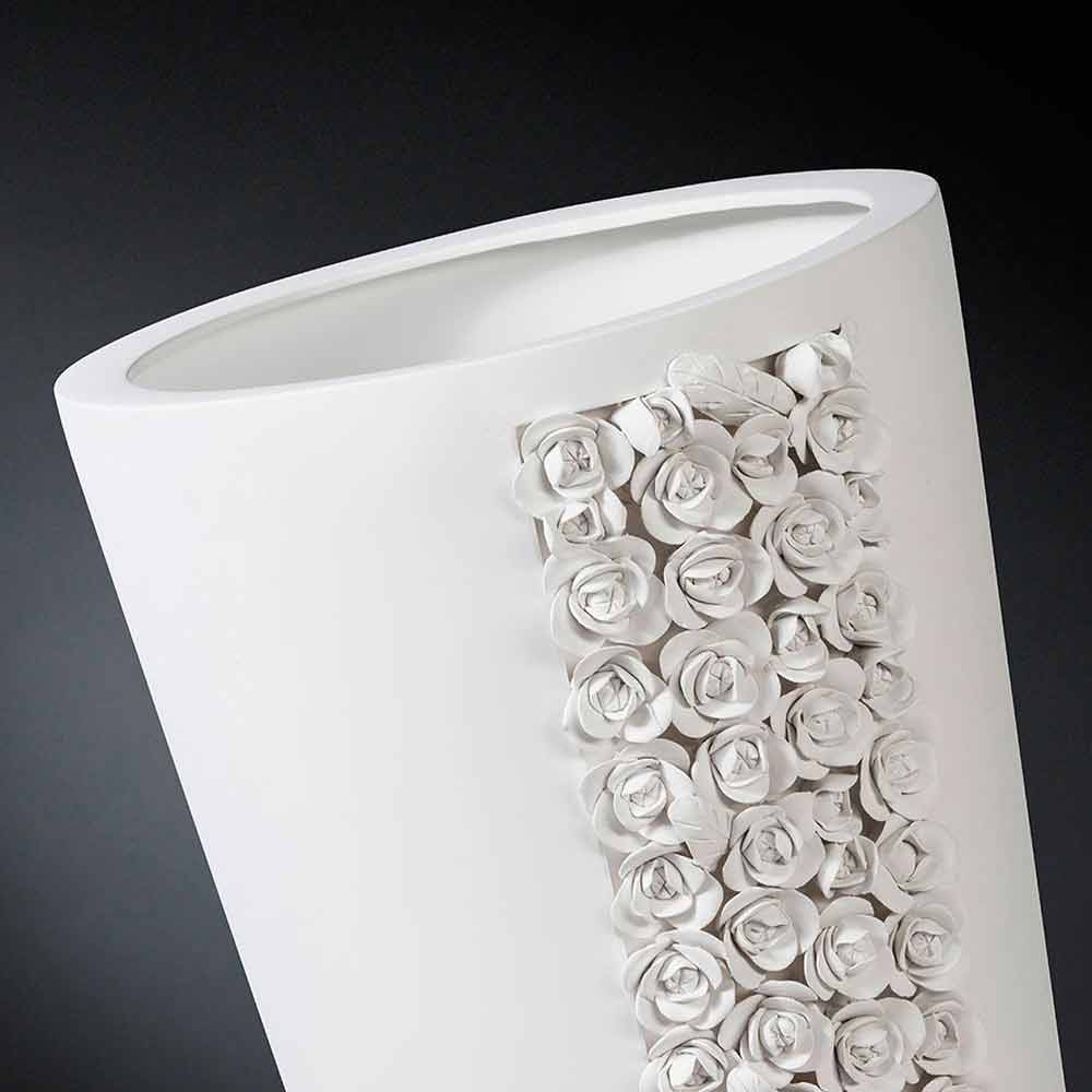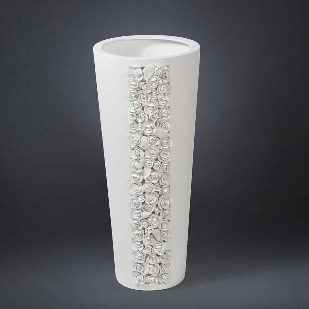 Jarrón ornamental alto de cerámica blanca hecho a mano en Italia.