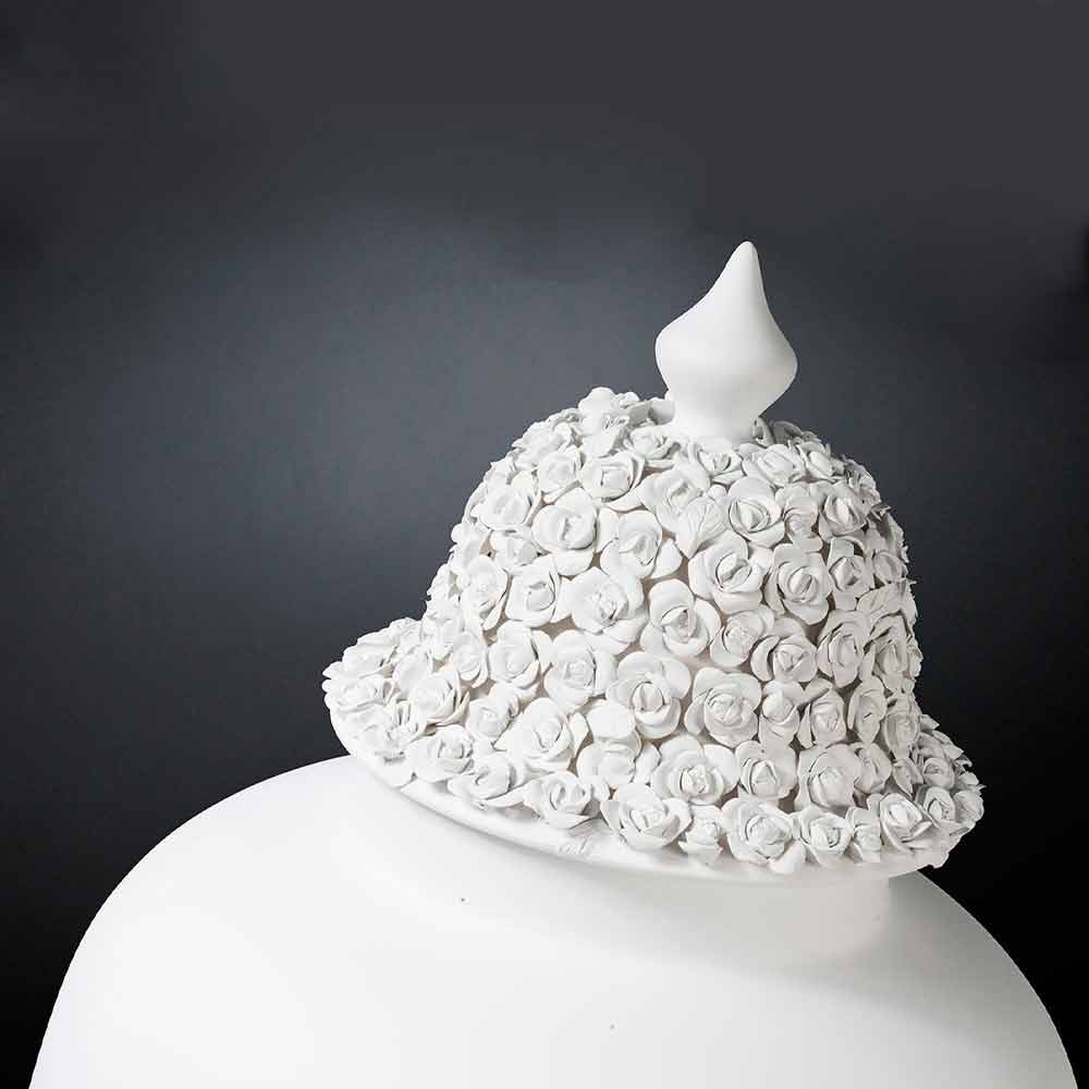Jarrón decorativo alto para interiores en cerámica blanca hecho a mano en Italia.