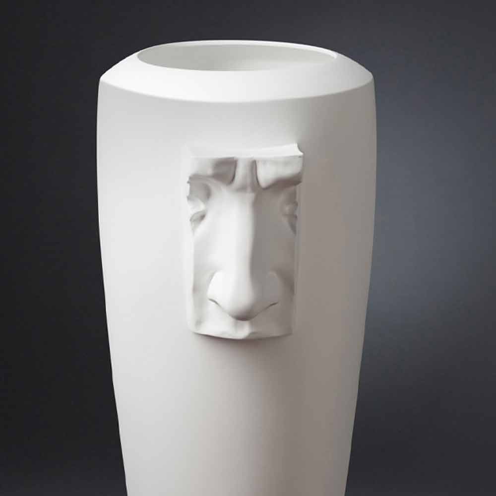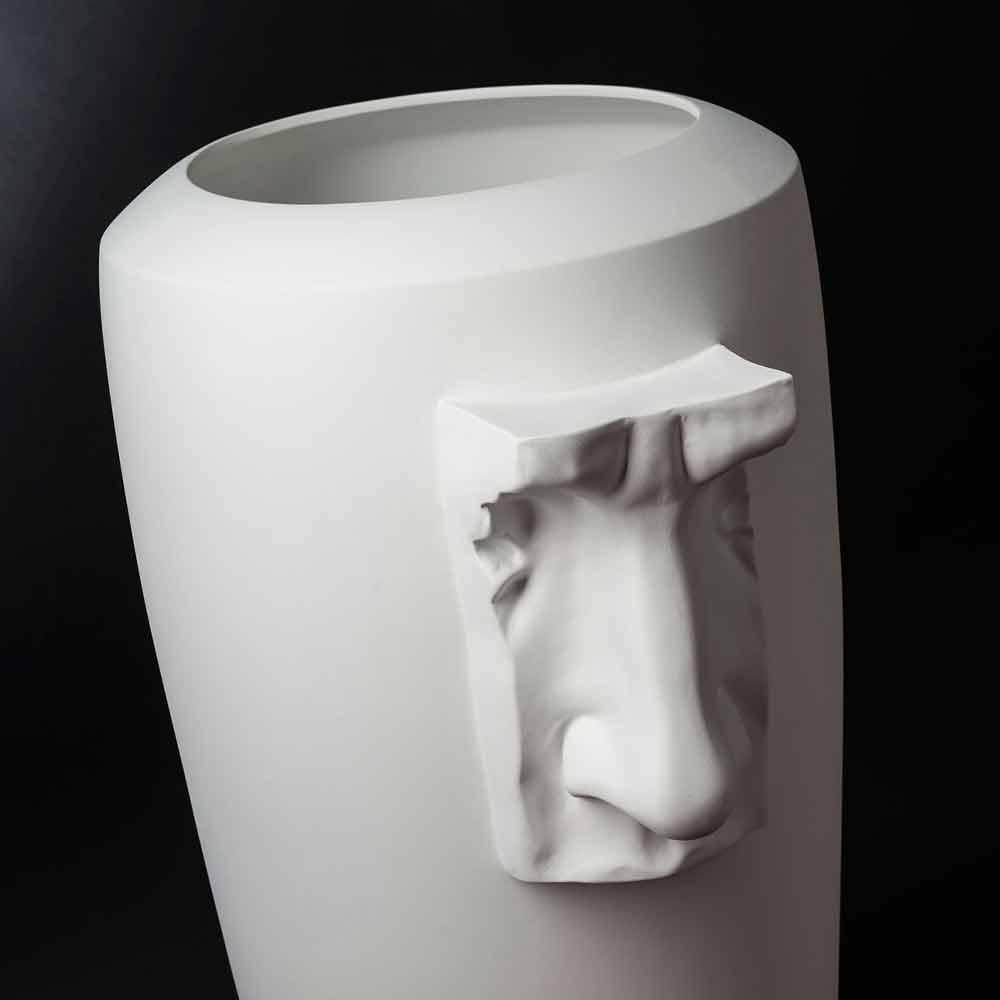 Original jarrón decorativo de interior en cerámica blanca opaca hecho a mano con una producción 100% Made in Italy . Una idea de mobiliario totalmente revolucionaria que combina diseños esenciales con elementos extrapolados de obras de arte de la cultura italiana para crear un elemento decorativo exclusivo capaz de revolucionar el estilo de cualquier ambiente moderno, aportando un toque de originalidad y una estética extremadamente creativa. . La artesanía subraya su valor y está marcada por la precisión, la pasión y el amor por la tradición. El resultado es una idea de mobiliario exclusivo ideal para los más variados ambientes, desde el mobiliario del hogar hasta el de hoteles, restaurantes, espacios contract, spas pero también como escenario para eventos y bodas.