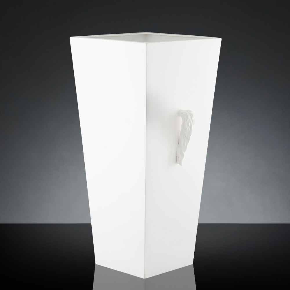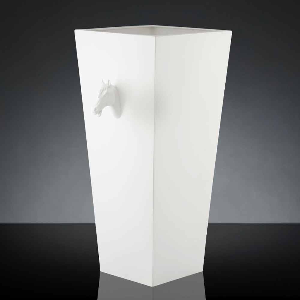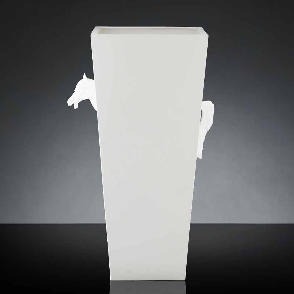 Jarrón decorativo para interiores con forma cuadrada fabricado en cerámica blanca opaca hecho a mano en Italia por artesanos expertos en el sector durante generaciones. Un complemento con una estética esencial y elegante enriquecida y singularizada por los originales detalles en forma de caballo colocados en la parte superior del jarrón que enfatizan su alma creativa y lo convierten en una solución perfecta tanto para ambientes de estilo clásico como para espacios más modernos en los que crea un maravilloso juego de contrastes entre diferentes estilos. El uso de la cerámica y la artesanía aumentan su valor y valor para dar vida a un resultado exclusivo y de alta calidad . Un diseño ideal para los más variados ambientes, desde el mobiliario del hogar hasta el de hoteles, restaurantes, espacios contract, spas pero también como escenario para eventos y bodas.