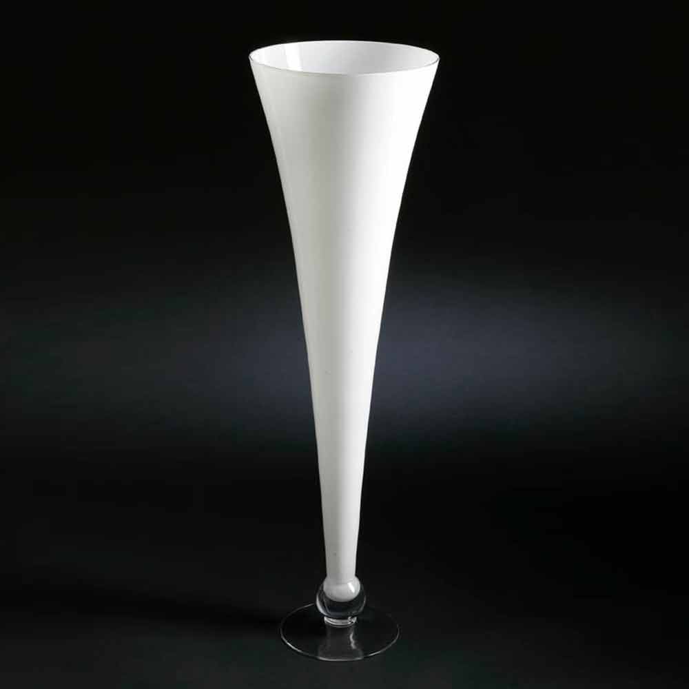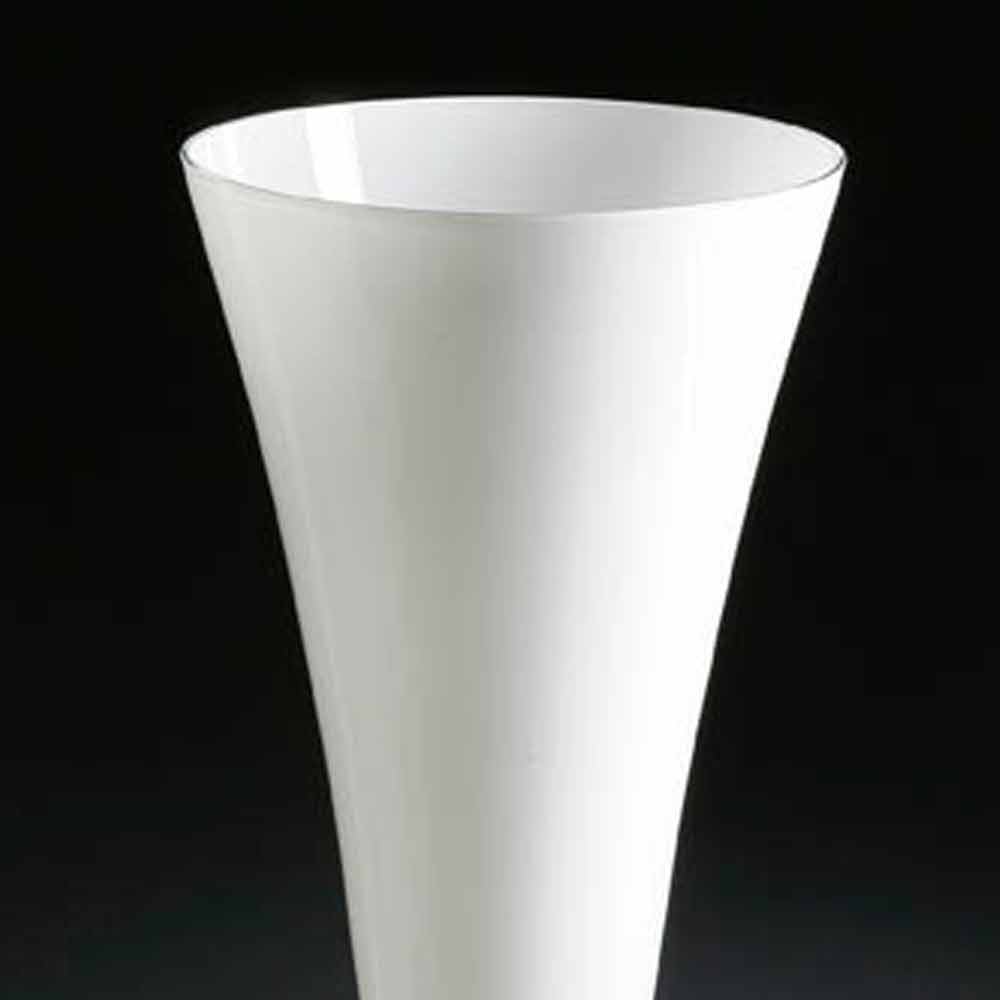 Florero alto decorativo en vidrio blanco y transparente fabricado en Italia.