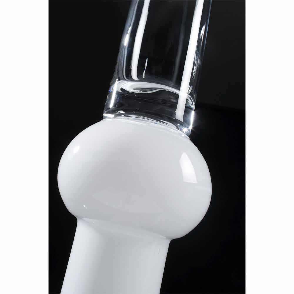 Florero alto decorativo en vidrio blanco y transparente fabricado en Italia.