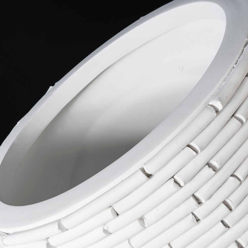 Jarrón alto para interiores en cerámica blanca mate hecho a mano en Italia. El uso de la cerámica y la artesanía junto con el procesamiento particular que cubre parte de la estructura del jarrón, representa las características que lo convierten en un elemento decorativo exclusivo y refinado, aumentando su valor y enfatizando su calidad. El resultado es un complemento elegante y especialmente versátil , capaz de adaptarse a cualquier situación estilística de la mejor forma posible. Una estética ideal para los más variados ambientes, desde el mobiliario del hogar hasta el de hoteles, restaurantes, espacios contract, spas pero también como escenario para eventos y bodas.
