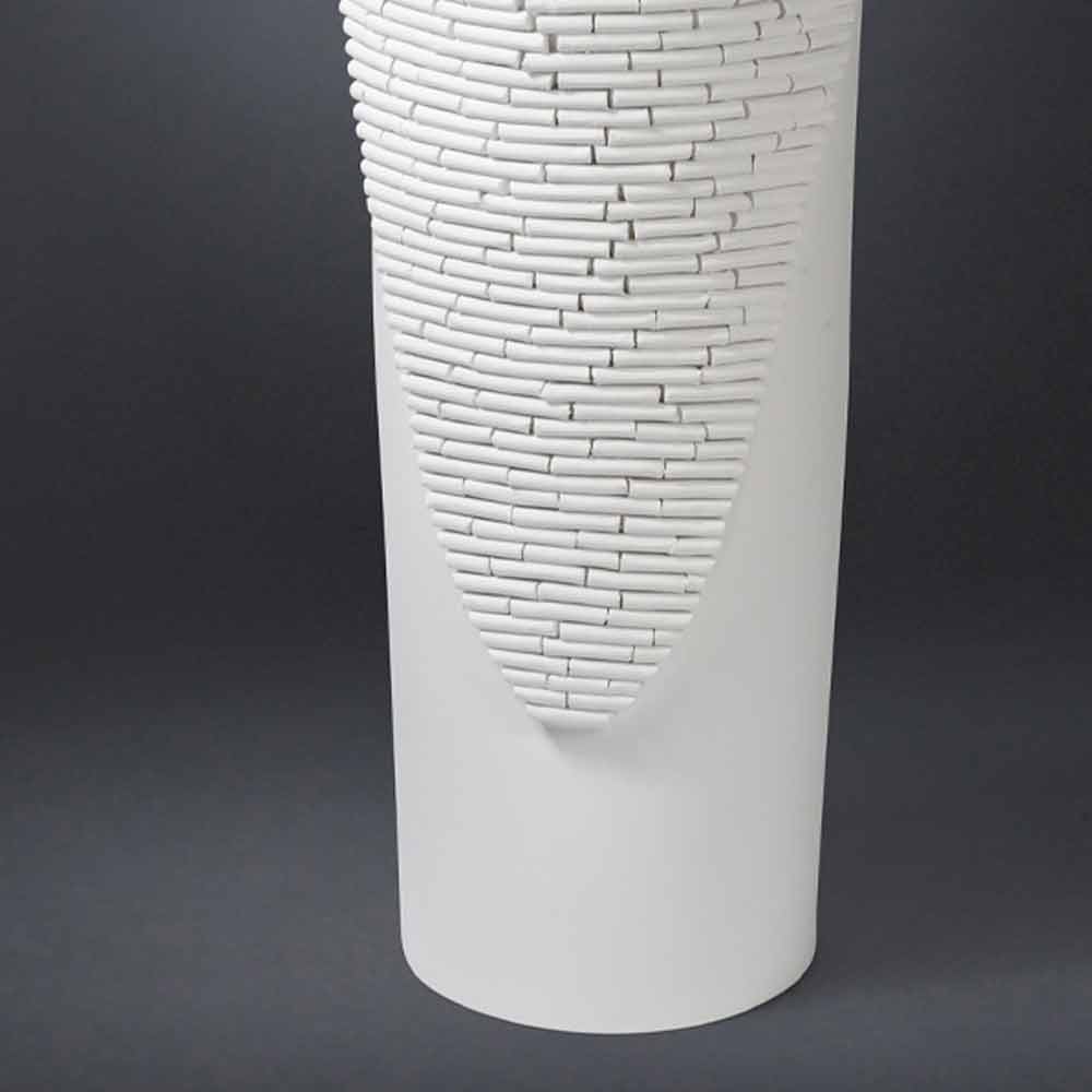 Jarrón decorativo alto de cerámica blanca mate hecho a mano en Italia.