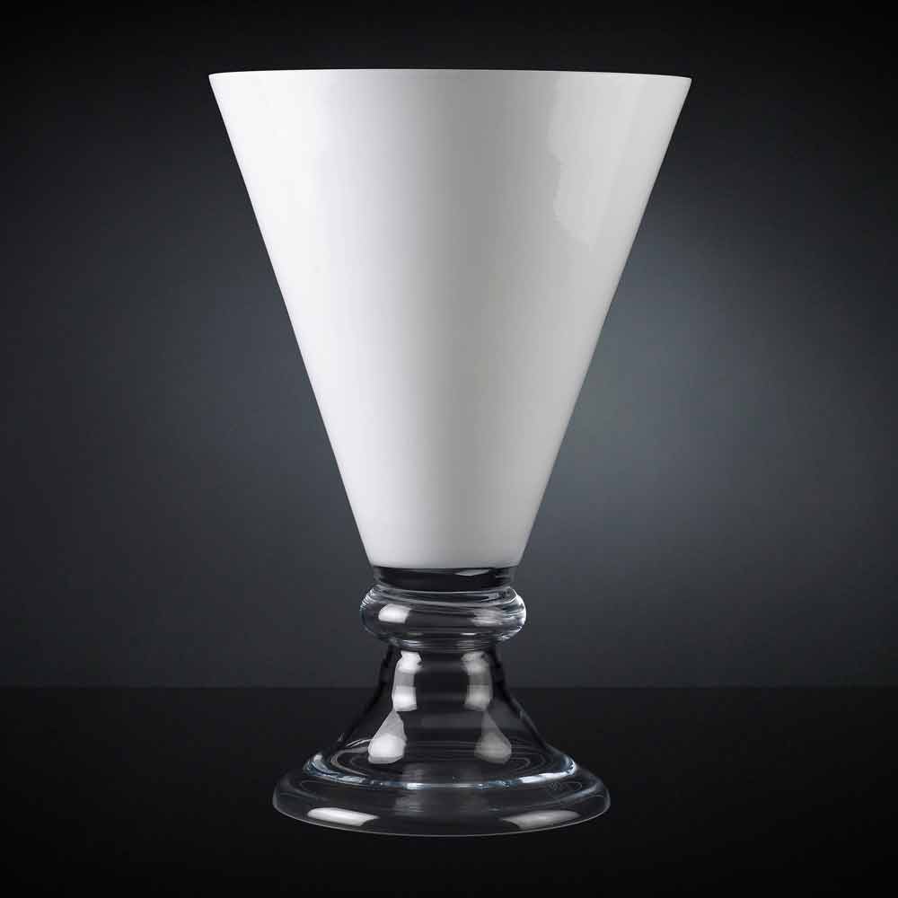Florero contemporáneo para decoración de interiores fabricado en vidrio y acabado blanco transparente mecanizado mediante un 100% Made in Italy. Un diseño ideal para los más variados ambientes, desde el mobiliario del hogar hasta el de hoteles, restaurantes, espacios contract, spas pero también como escenario para eventos y bodas. Su estética clásica y sofisticada representa su punto fuerte permitiéndole completar cualquier espacio con clase gracias también a la elegancia intrínseca del vidrio, un material de calidad con un alto valor .