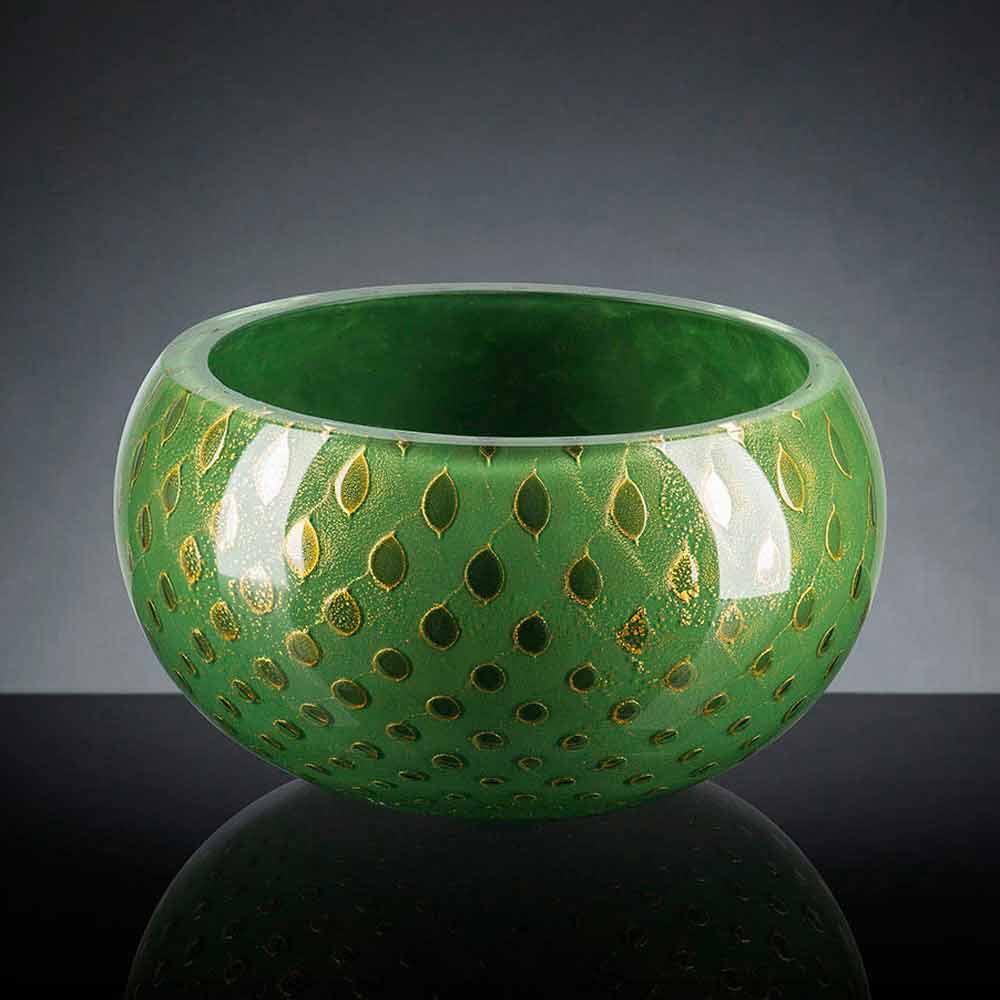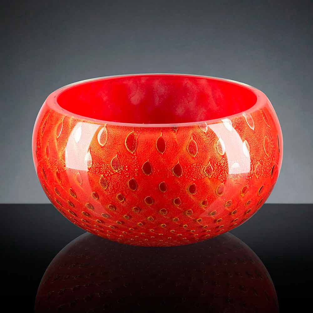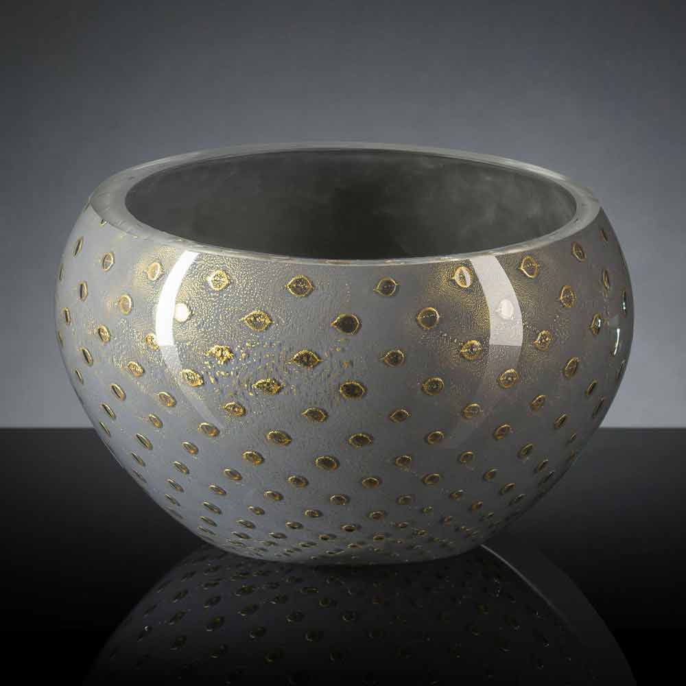 Jarrón de interior redondo en vidrio soplado de Murano de color Made in Italy.