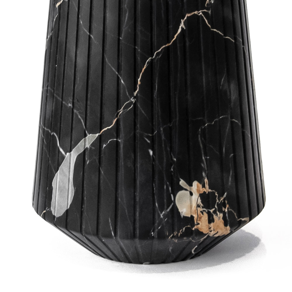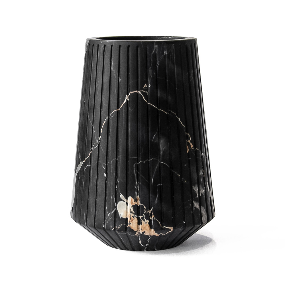 Jarrón decorativo mediano en mármol rayado blanco o negro fabricado en Italia.