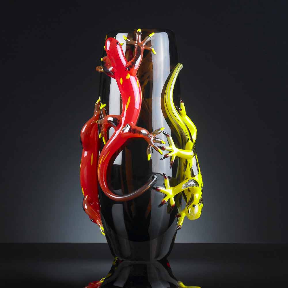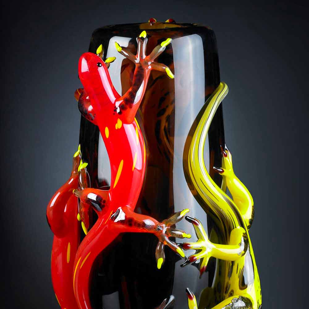 Jarrón de vidrio coloreado con Geckos hecho a mano en Italia - Geco