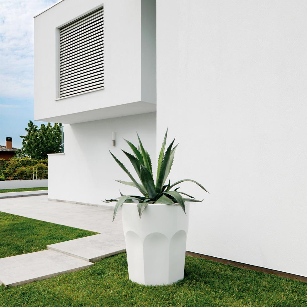 polietileno disponible en la versión opaca caracterizada por una excelente resistencia al sol, los golpes y el calor, en la versión lacada resistente y brillante que permite crear juegos de luces y reflejos que se vuelven protagonistas dentro del ambiente o , finalmente, en la versión metálica. Nacido como un simple jarrón decorativo para plantas medianas / grandes, este producto también es ideal para fiestas o eventos al aire libre para usarse para enfriar botellas cuando se llenan de hielo.