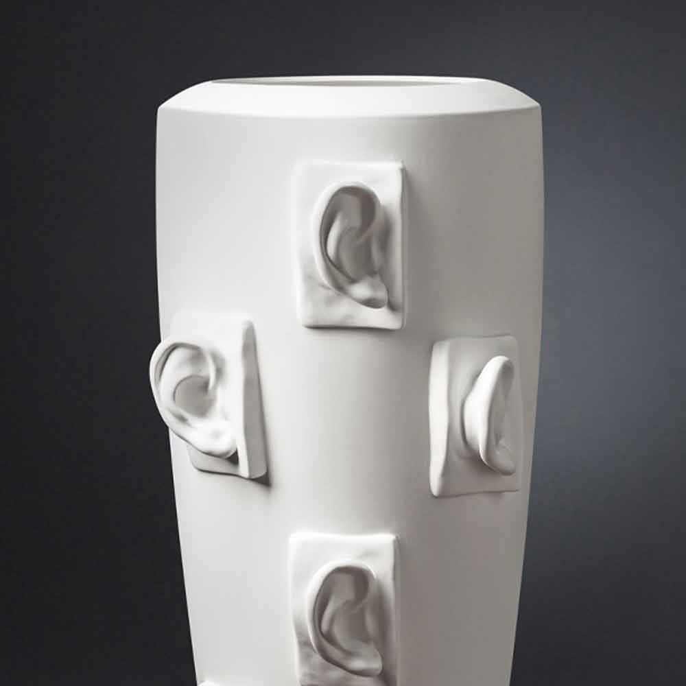 Jarrón ornamental de interior original con decoraciones en cerámica blanca opaca hecha a mano a través de una producción íntegramente hecha en Italia . Un diseño concebido y concebido para quienes aman amueblar sus espacios de una manera sumamente innovadora y revolucionaria para una estética exclusiva que pueda llenar la estancia de carácter y personalidad. De la unión entre líneas simples y minimalistas y elementos extrapolados de obras de arte de la cultura italiana, nace un original jarrón cuyo valor se enfatiza por el uso de cerámica, un material elegante y de calidad . La artesanía subraya su valor y está marcada por la precisión, la pasión y el amor por la tradición. El resultado es una idea de mobiliario única, ideal para los más variados ambientes, desde muebles para el hogar hasta hoteles, restaurantes, áreas contract, spas pero también como escenario para eventos y bodas.
