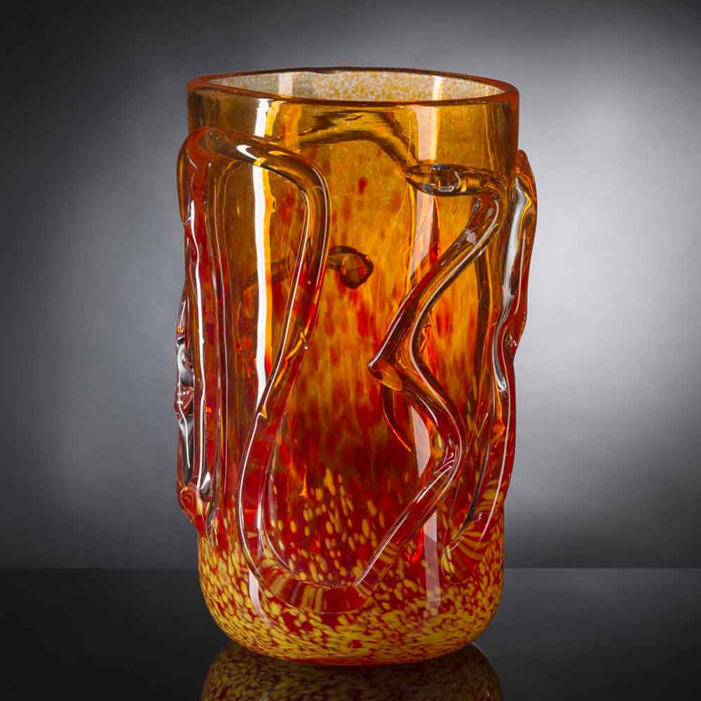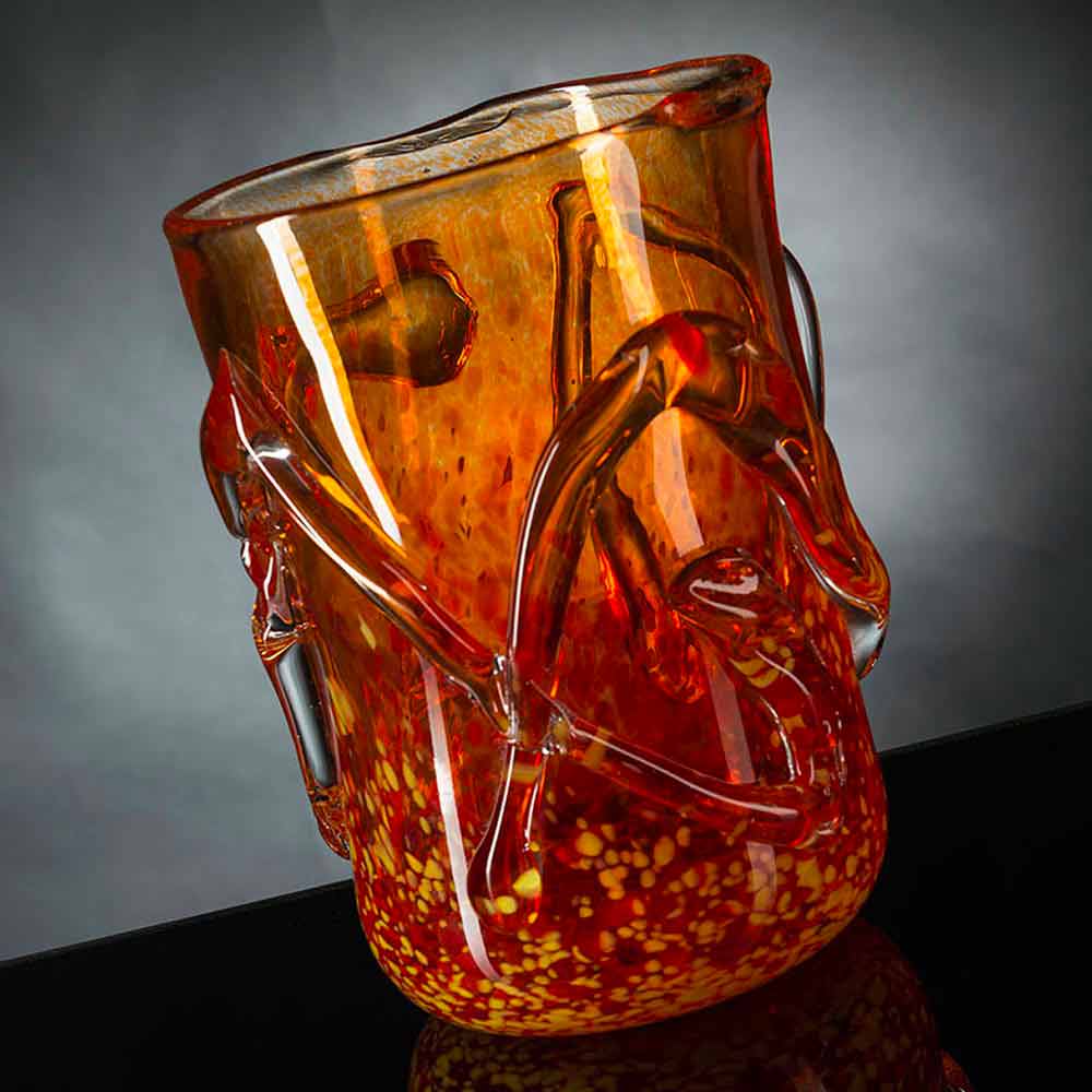 vidrio soplado de Murano con acabado naranja con estructura trabajada. El maravilloso