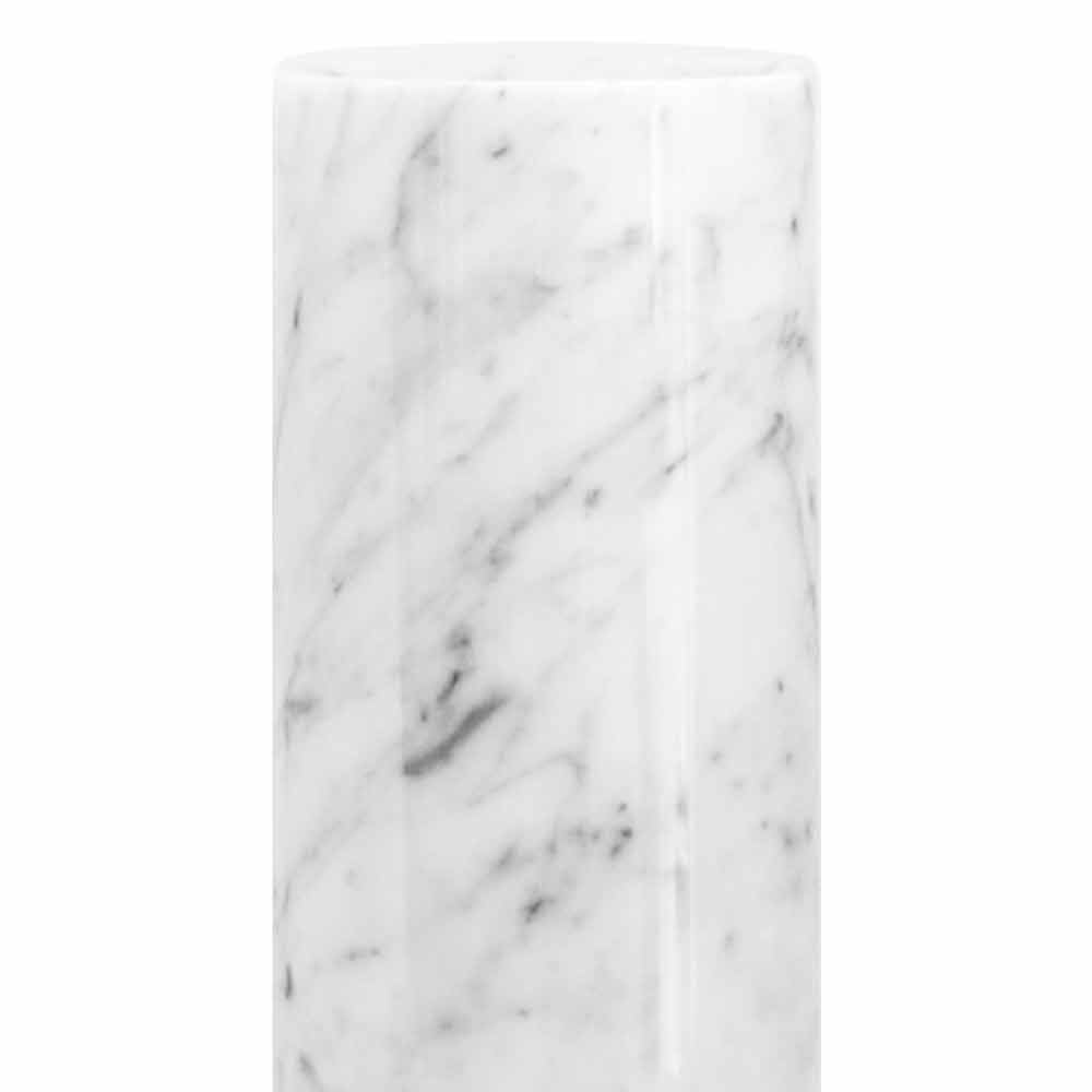 Jarrón decorativo que se caracteriza por el material de alta calidad utilizado para su realización, el mármol blanco de Carrara . Es una pieza única ya que cada bloque de mármol es diferente en vetas y tonalidades.