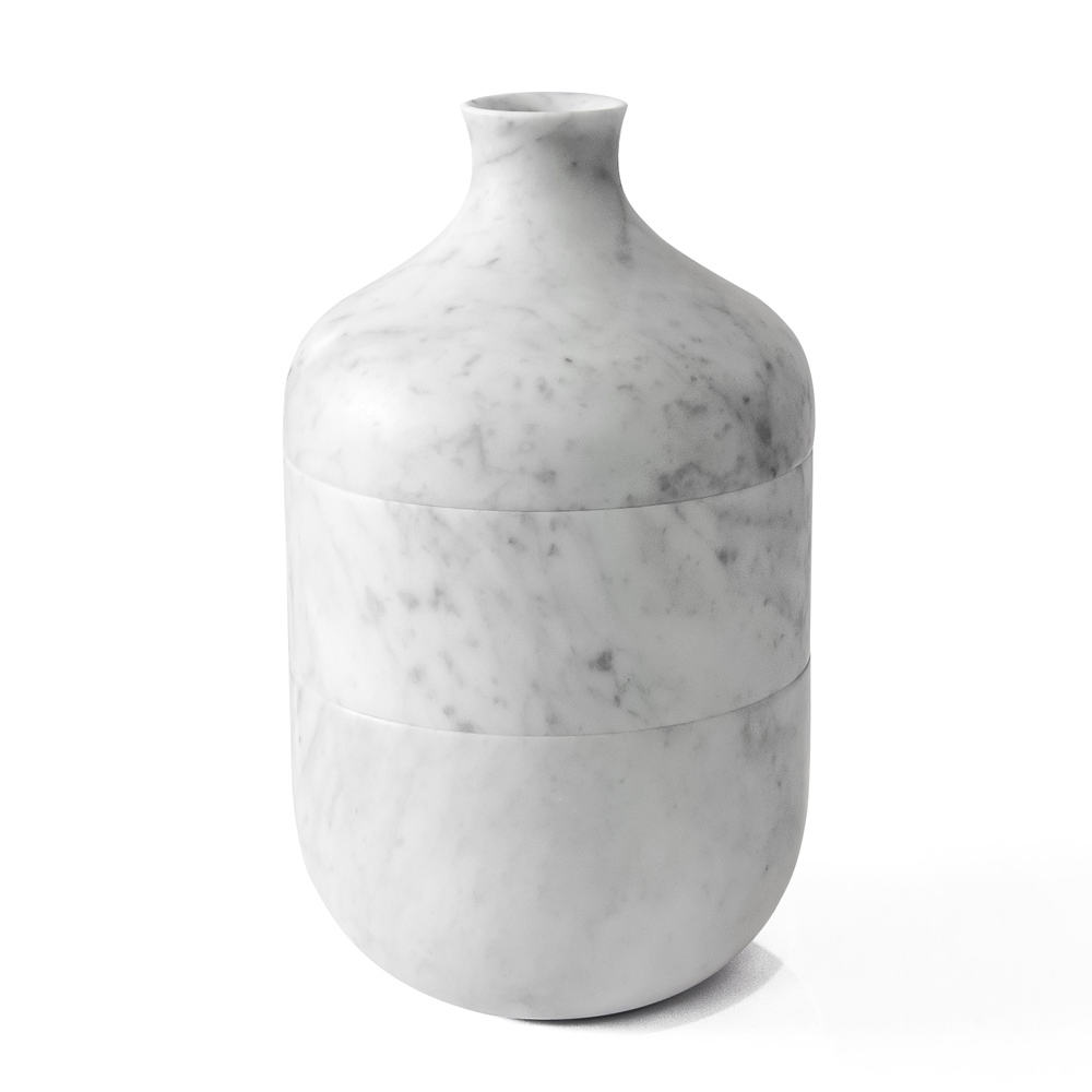 Jarrón decorativo en mármol blanco de Carrara diseño en 3 partes fabricado en Italia.