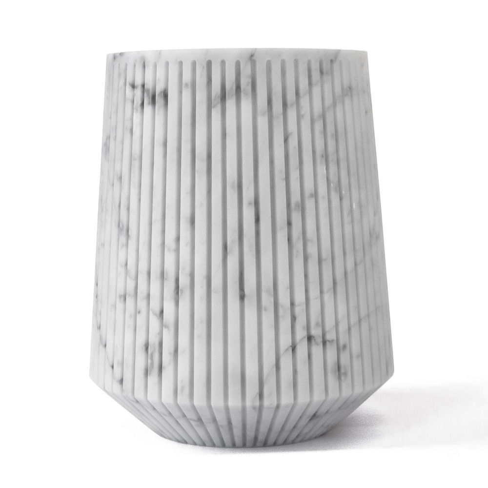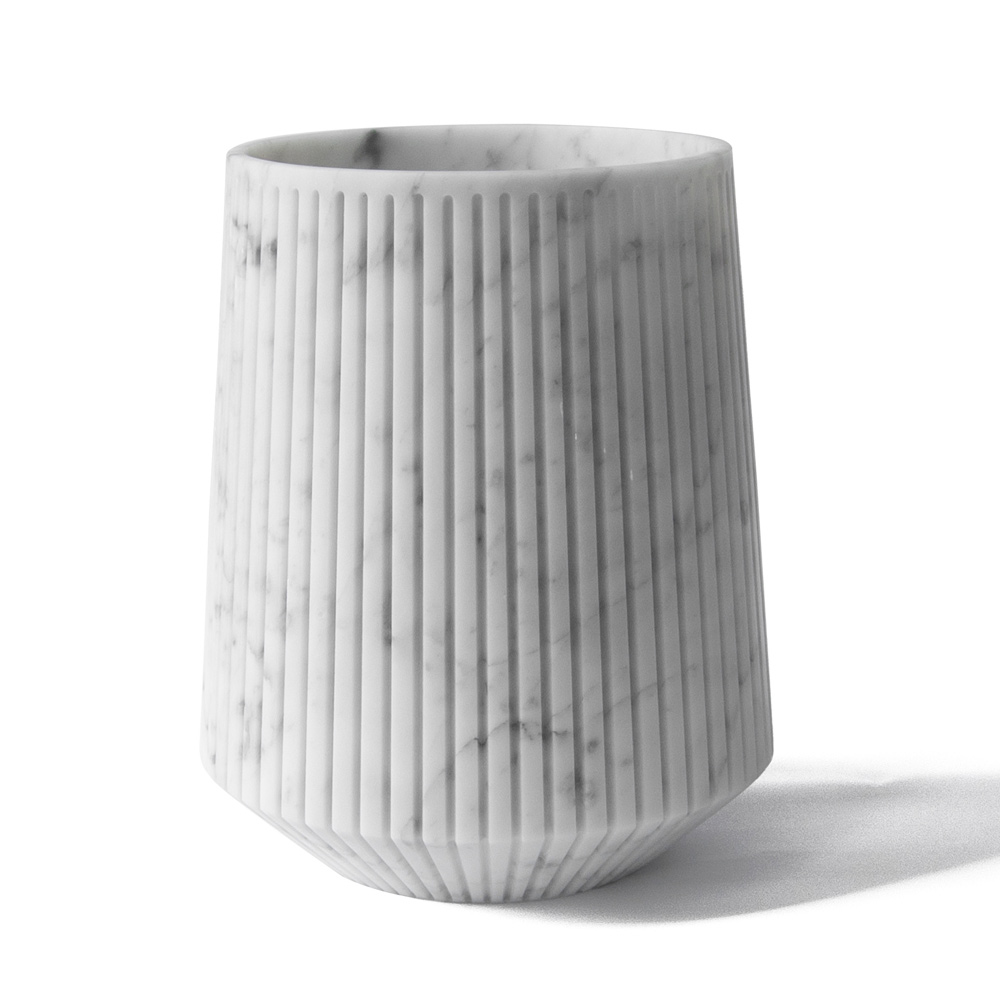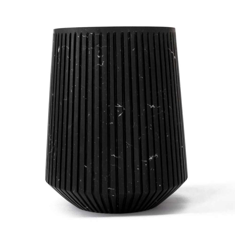 Jarrón grande hecho a mano en mármol blanco o negro con rayas de diseño made in Italy.