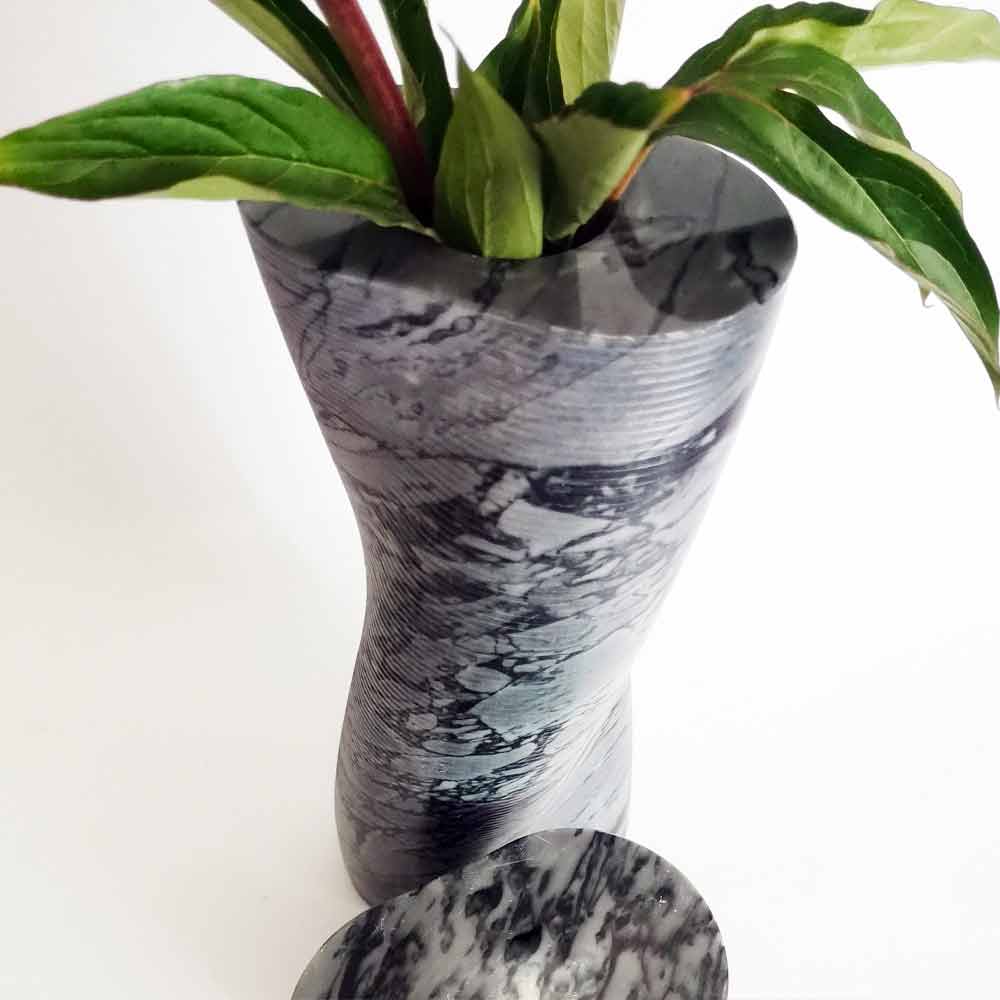 mármol Bardiglio floreado , un material compacto con un color gris claro, caracterizado por vetas gris antracita. Ideal para usar solo como objeto decorativo o incluso con flores que pueden crear un maravilloso lugar colorido en ambientes con muebles modernos y elegantes. La combinación de materiales y técnicas empleadas junto con el maravilloso trabajo de los artesanos permiten obtener un producto final de alta calidad con atención al detalle y perfecto para ambientes con un gusto contemporáneo y sofisticado.