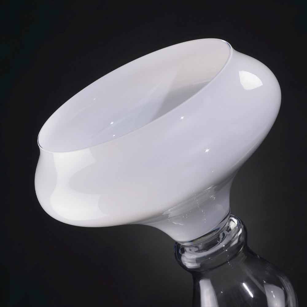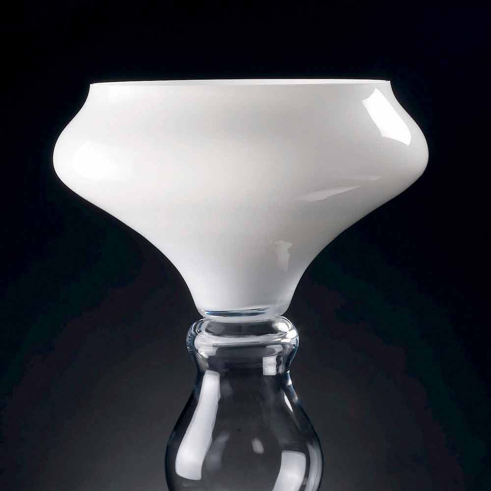 Florero elegante para interiores en vidrio blanco y transparente fabricado en Italia.