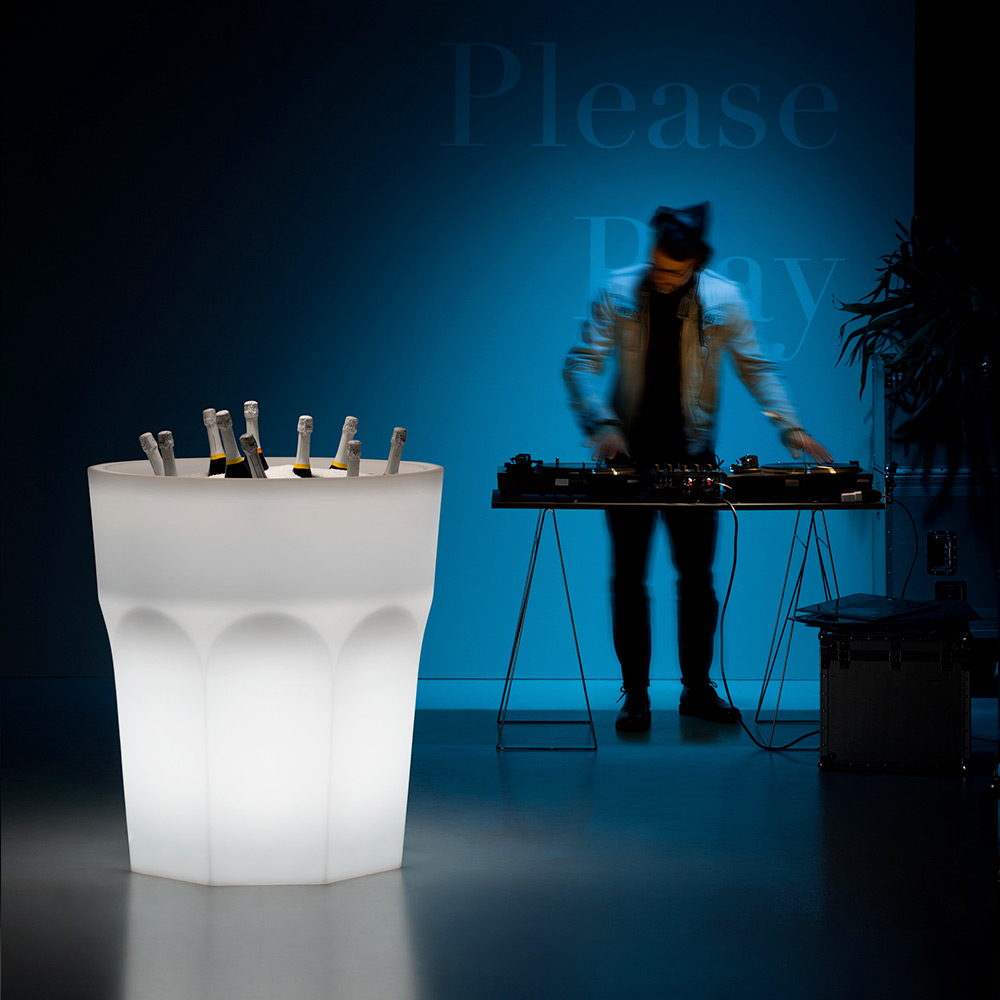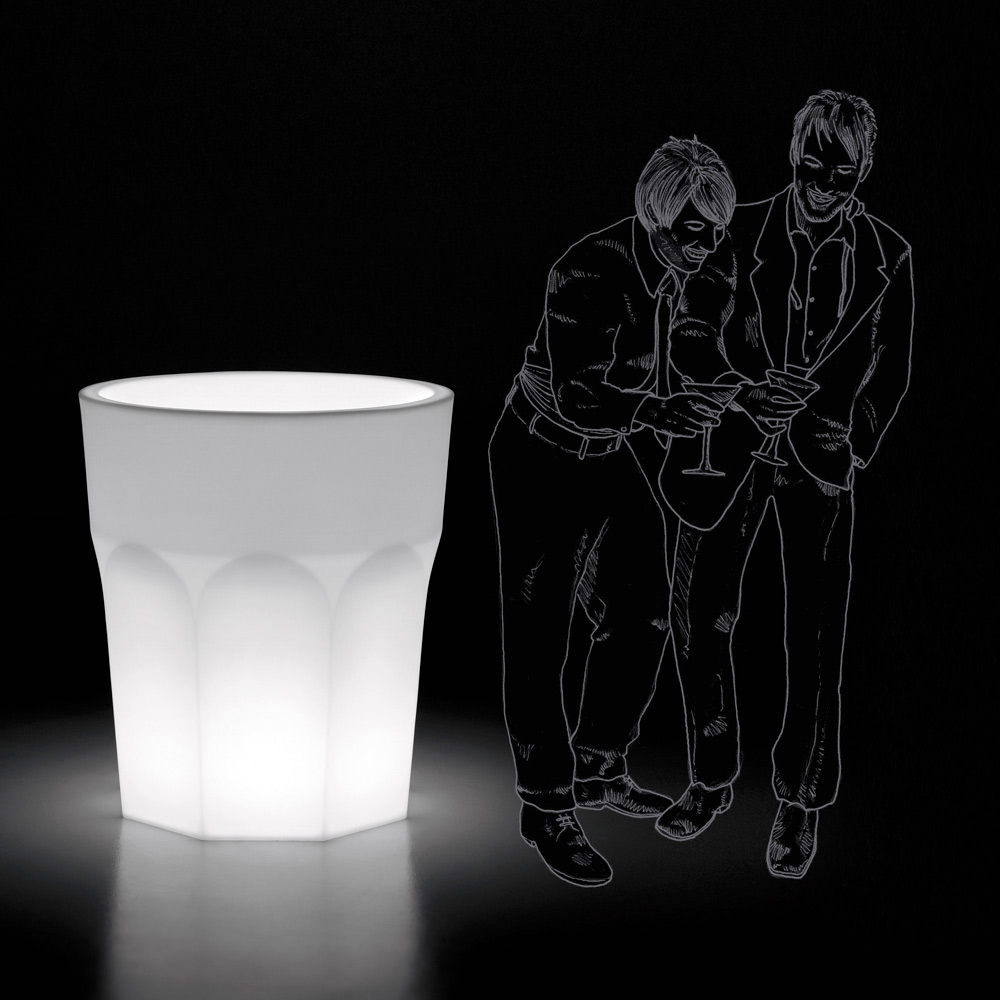 Florero de diseño decorativo luminoso en polietileno con luz LED Made in Italy.