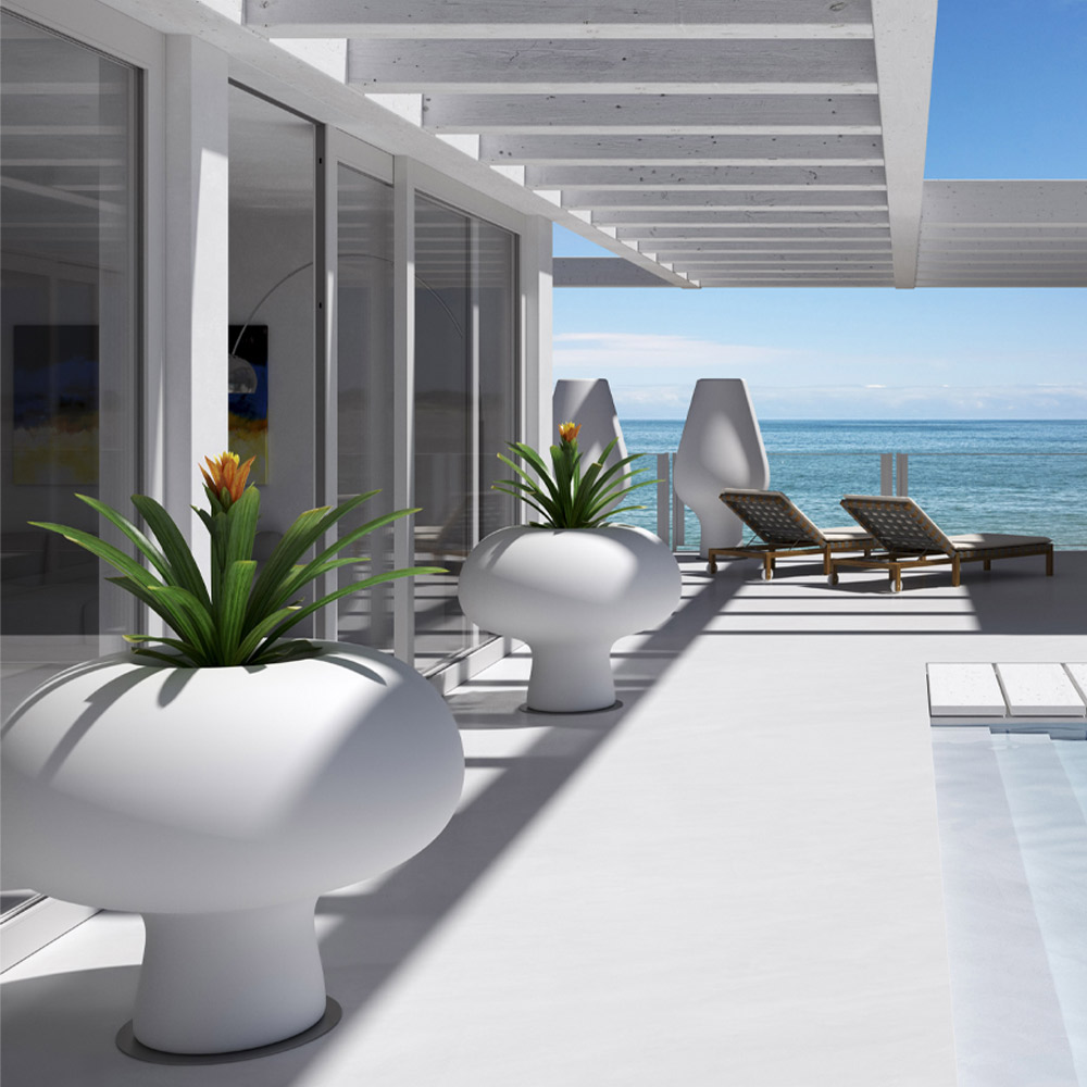 Florero de exterior luminoso en polietileno opaco con LED Made in Italy.