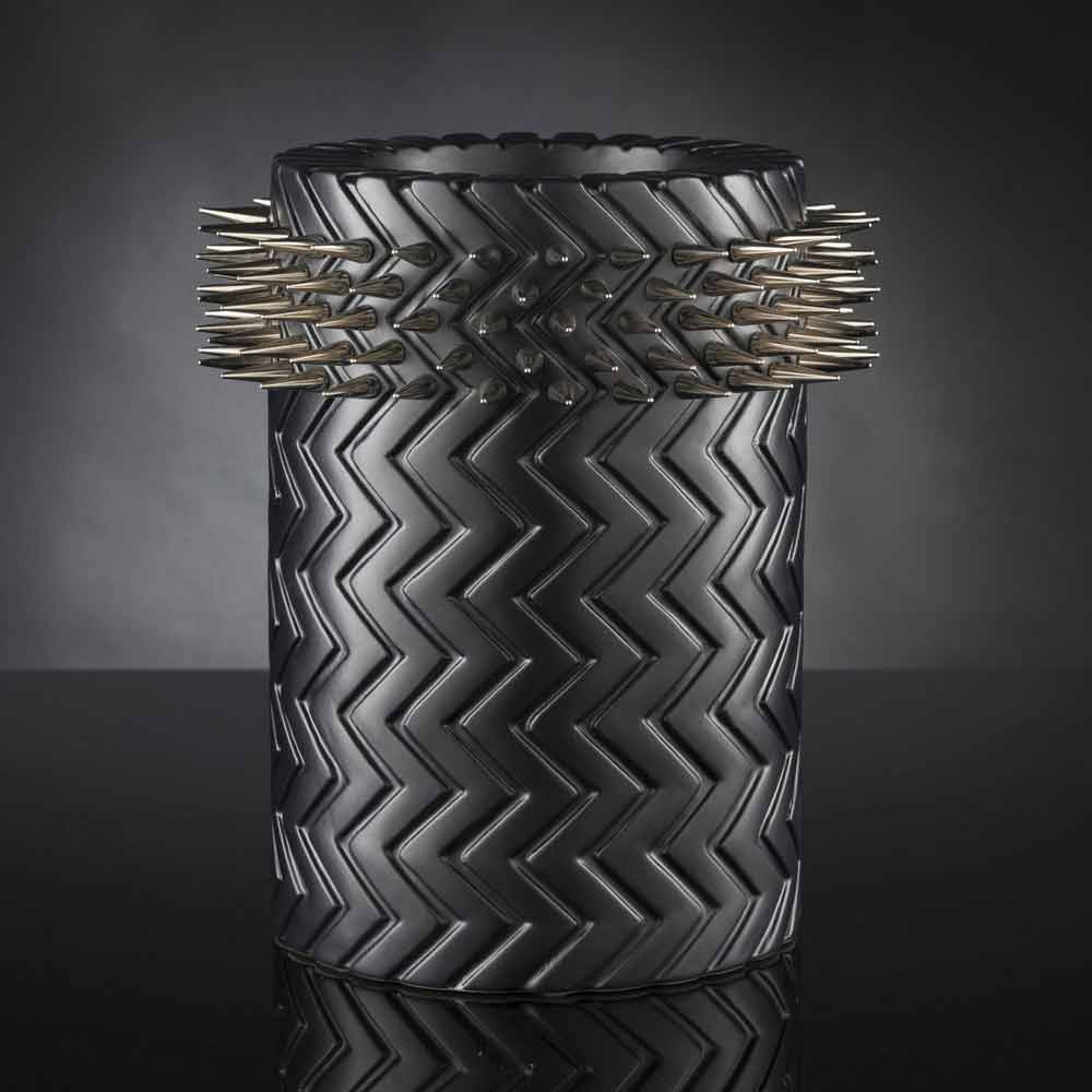 Jarrón decorativo en cerámica negra mate con clavos de acero hecho a través de una artesanía Made in Italy . Una estética imponente con una fuerte personalidad contemporánea subrayada por el uso de dos materiales diferentes unidos entre sí para crear una idea innovadora y revolucionaria ideal para quienes aman decorar sus espacios de una manera única y con carácter. La producción artesanal representa uno de sus puntos fuertes ya que aumenta y enfatiza el valor y la calidad del producto, dando vida a un resultado exclusivo y refinado . Un estilo ideal para los más variados ambientes, desde el mobiliario del hogar hasta el de hoteles, restaurantes, espacios contract, spas pero también como escenario para eventos y bodas.