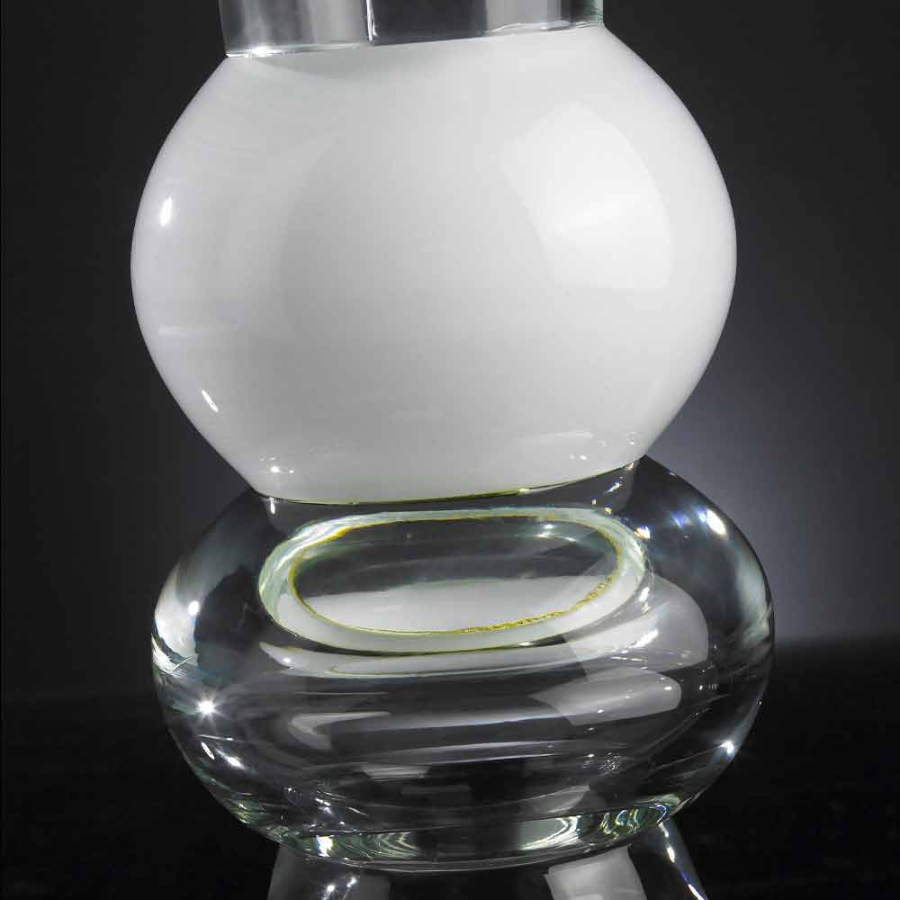 Jarrón ornamental de interior en vidrio blanco y transparente Made in Italy.