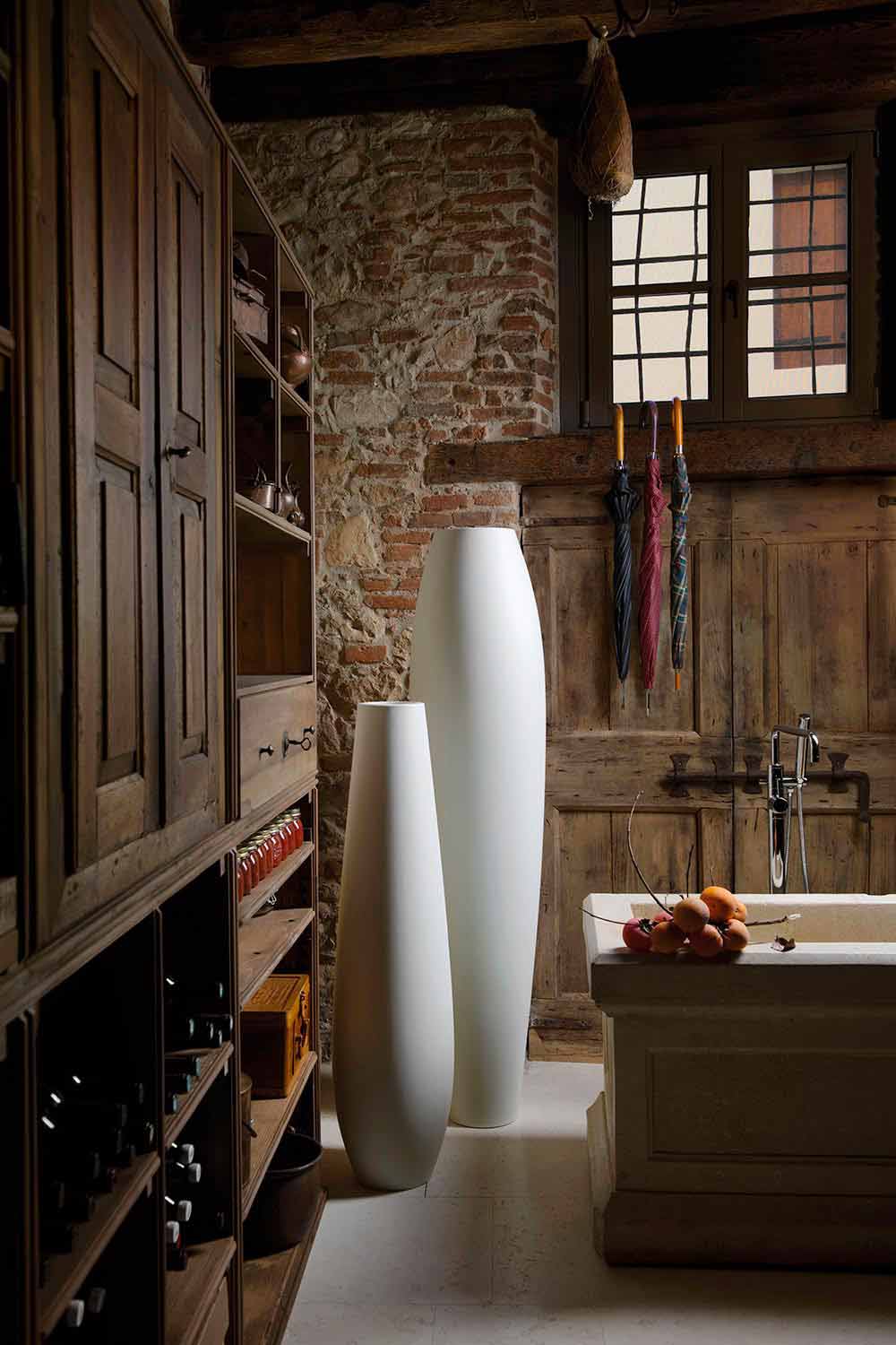 Jarrón de diseño decorativo reversible en polietileno Made in Italy.