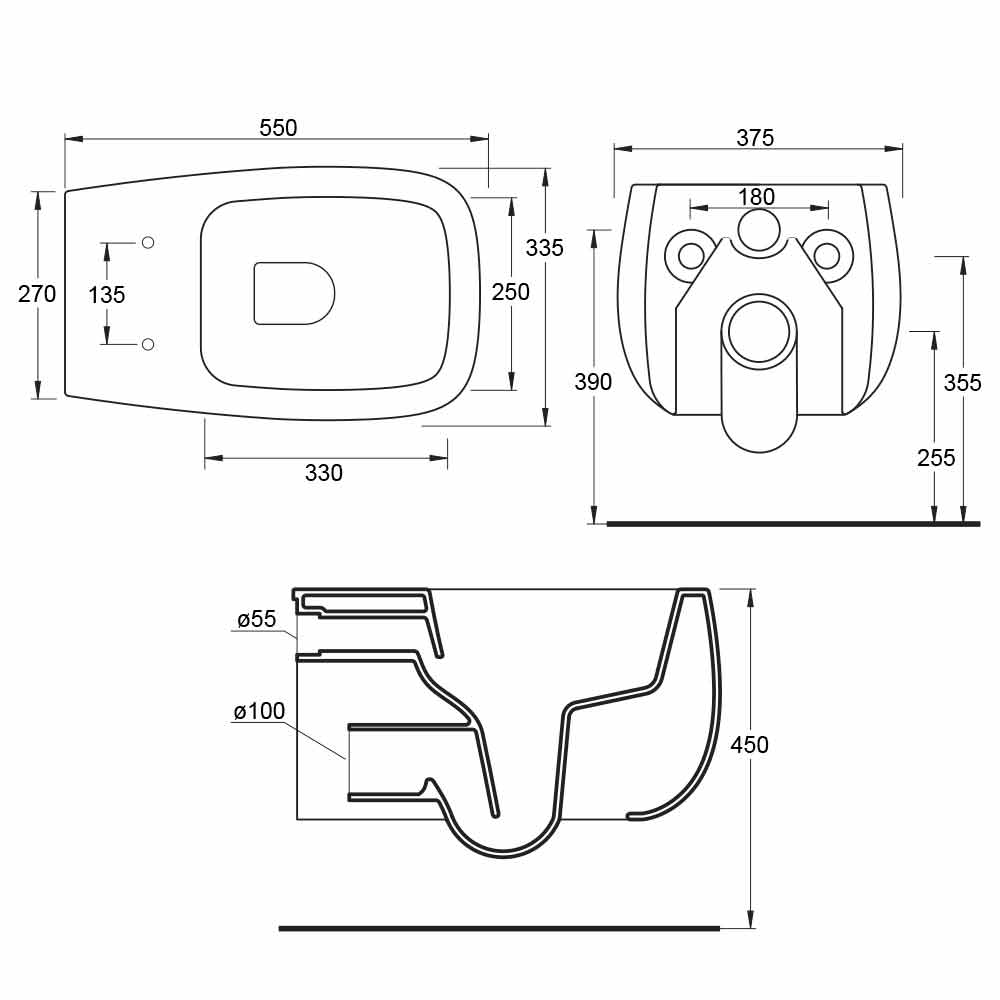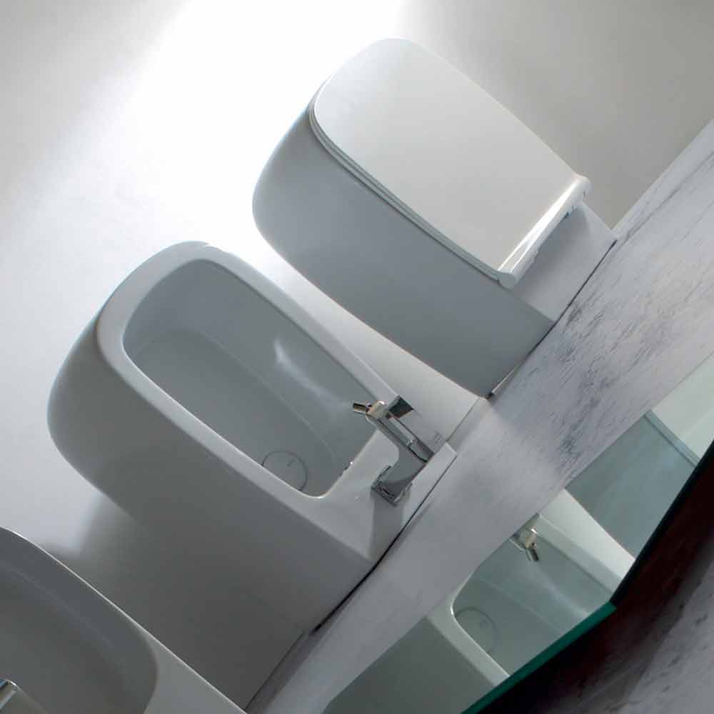- asiento blanco con bisagras cromadas de cierre suave con sistema de liberación rápida;